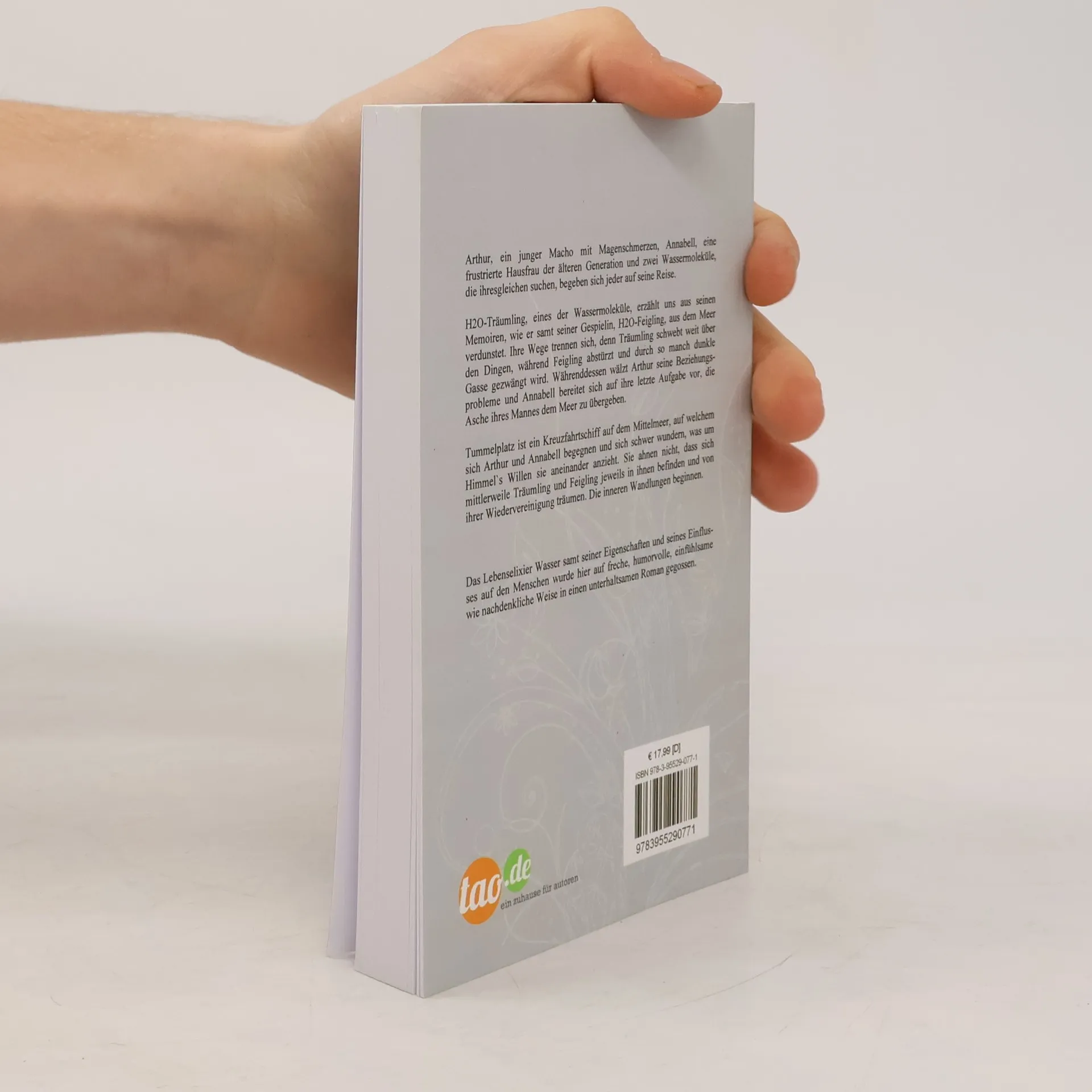 Arthur, ein junger Macho mit Magenschmerzen, Annabell, eine frustrierte Hausfrau der alteren Generation und zwei Wassermolekule, die ihresgleichen suchen, begeben sich jeder auf seine Reise. H2O-Traumling, eines der Wassermolekule, erzahlt uns aus seinen Memoiren, wie er samt seiner Gespielin, H2O-Feigling, aus dem Meer verdunstet. Ihre Wege trennen sich, denn Traumling schwebt weit uber den Dingen, wahrend Feigling absturzt und durch so manch dunkle Gasse gezwangt wird. Wahrenddessen walzt Arthur seine Beziehungsprobleme und Annabell bereitet sich auf ihre letzte Aufgabe vor, die Asche ihres Mannes dem Meer zu ubergeben. Tummelplatz ist ein Kreuzfahrtschiff auf dem Mittelmeer, auf welchem sich Arthur und Annabell begegnen und sich schwer wundern, was um Himmels Willen sie aneinander anzieht. Sie ahnen nicht, dass sich mittlerweile Traumling und Feigling jeweils in ihnen befinden und von ihrer Wiedervereinigung traumen. Die inneren Wandlungen beginnen. Das Lebenselixier Wasser samt seiner Eigenschaften und seines Einflusses auf den Menschen wurde hier auf freche, humorvolle, einfuhlsame wie nachdenkliche Weise in einen unterhaltsamen Roman gegossen.
