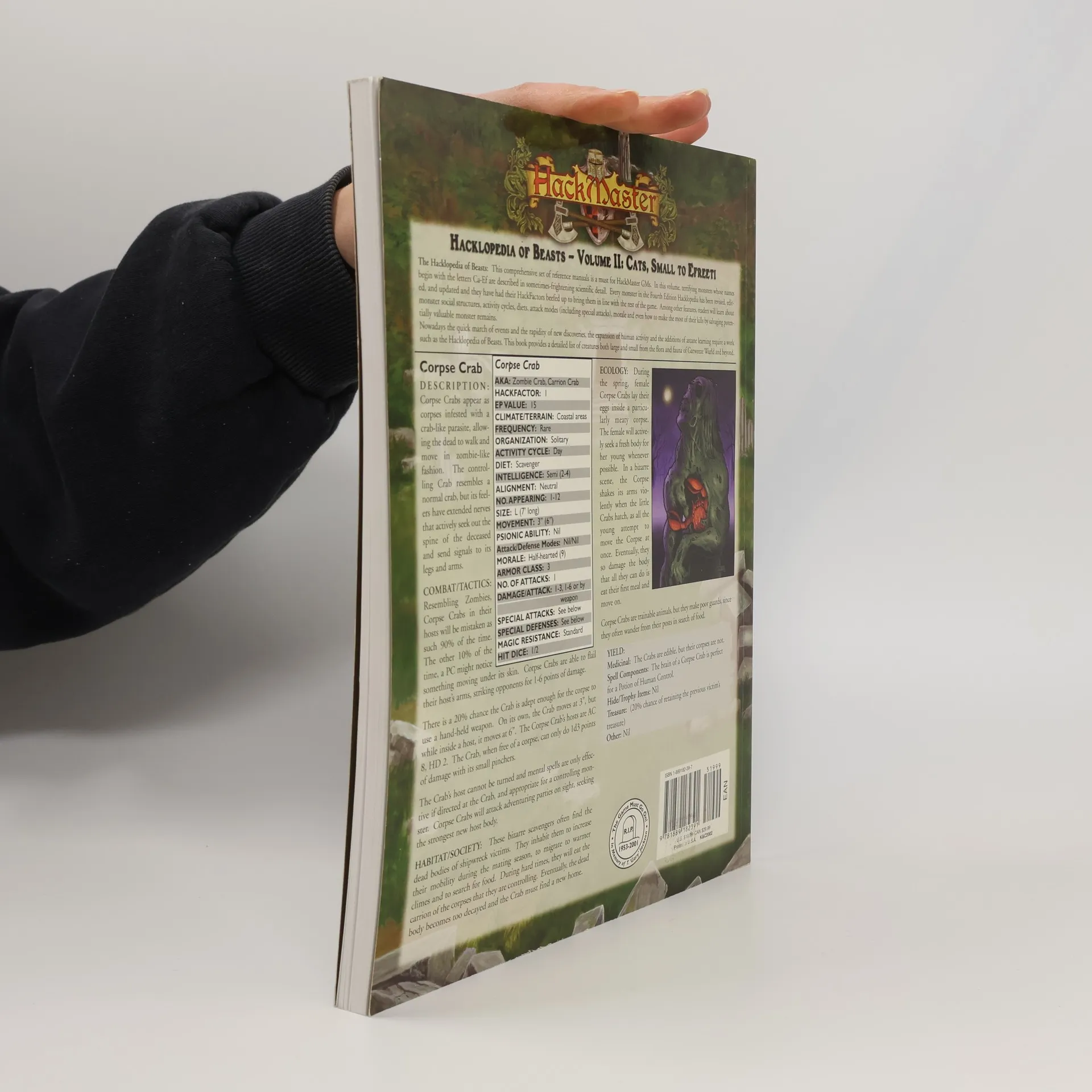 The Hacklopedia of Beasts: This comprehensive set of reference manuals is a must for HackMaster GMs. In this volume, terrifying monsters whose names begin with the letters Ca-Ef are described in sometimes-frightening scientific detail. Every monster in the Fourth Edition Hacklopedia has been revised, edited, and updated and they have had their HackFactors beefed up to bring them in line with the rest of the game. Among other features, readers will learn about monster social structures, activity cycles, diets, attack modes (including special attacks), morale and even how to make the most of their kills by salvaging potentially valuable monster remains.Nowadays the quick march of events and the rapidity of new discovereis, the expansion of human activity and the additions of arcane learning require a work such as the Hacklopedia of Beasts. This book provides a detailed list of creaturs both large and small from the flora and fauna of Garweeze Wurld and beyond.