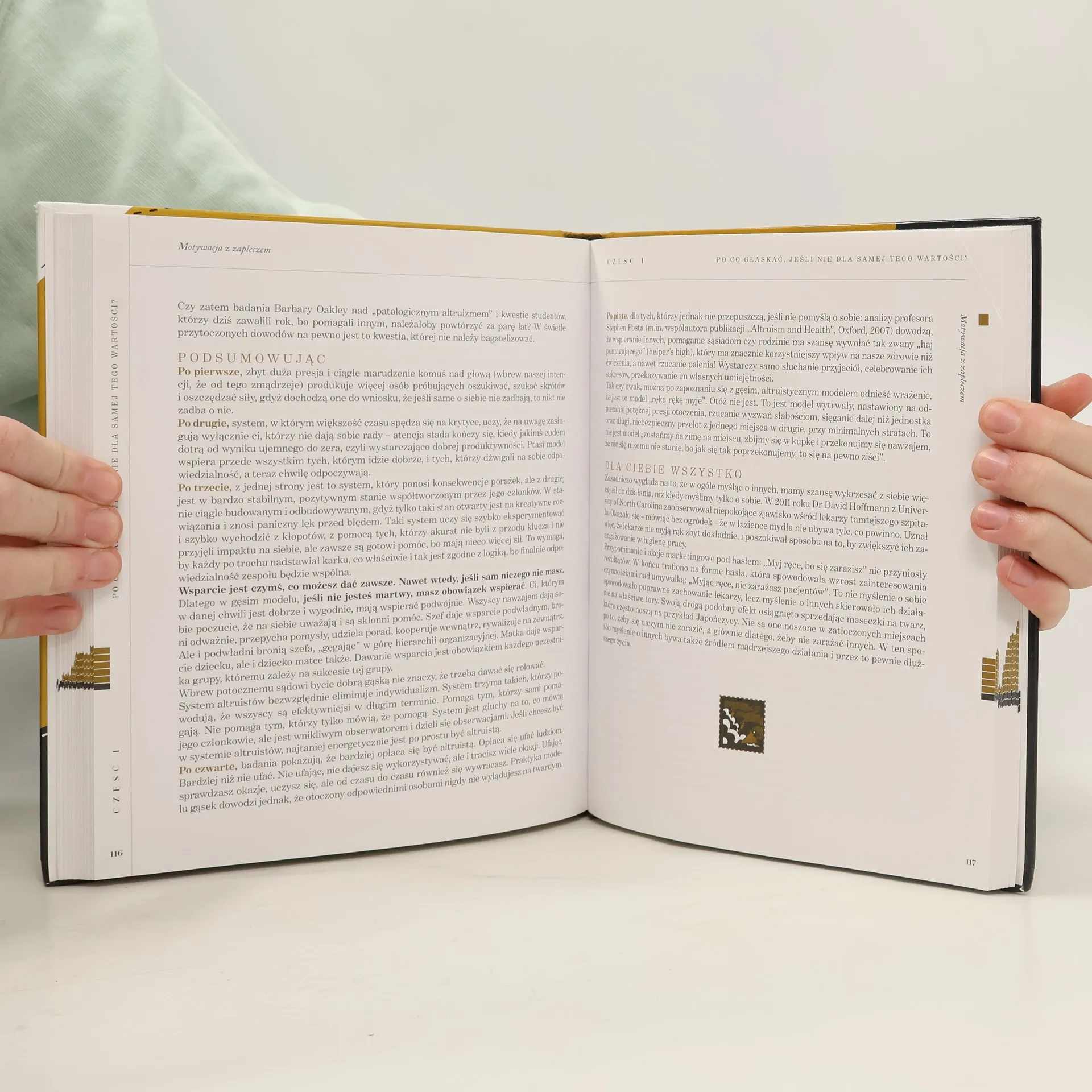 To książka wyjątkowa pod każdym względem. Powinien ją przeczytać każdy Polak. Rodzic, szef, podwładny, polityk, dziennikarz, trener, mąż i żona, sprzedawca i księgowy? Każdy, kto chce się dobrze czuć dłużej niż parę chwil i każdy, kto chce mieć pozytywny wpływ na innych, dać im energetycznego kopa. Każdy, kto chce utrzymać pracę, awansować czy budować związek oparty na zaufaniu, zrozumieniu i nieustannej ciekawości drugiej osoby."Głaskologia" powinna być obowiązkową lekturą szkolną! To nie tylko książka, ale swego rodzaju efektywna filozofia postępowania. Jest to lektura fascynująca, wciągająca i taka, która nie pozwala o sobie zapomnieć. Bogata merytorycznie, rzeczowa, dowcipna, mądra i konkretna. Momentami bezpardonowa. Na pewno nietuzinkowa. Autor sprawnie balansuje między przykładami, wynikami najnowszych światowych badań a metaforami pomagającymi zapamiętać najważniejsze wnioski.Uwaga: sięganie po tę książkę bez markera grozi koniecznością przerwania lektury po paru stronach w celu udania się do piórnika! Jeśli dostałeś "Głaskologię" od kogoś w prezencie - pomyśl o nim ciepło, bo możesz być pewien, że temu komuś bardzo zależy na Twoim powodzeniu w życiu.
