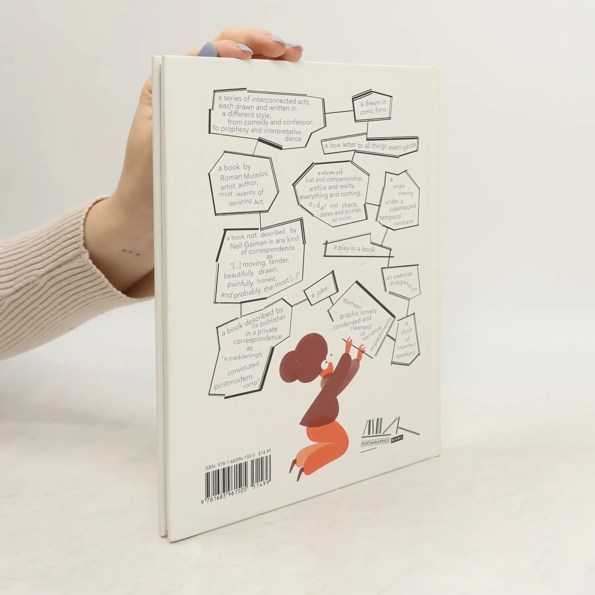 Written and drawn in thirteen tones, from comedy and confession to interpretative dance, <em>Vanishing Act</em> is synchronized in time and space on one melancholy evening. A paranoid man rehearses for an upcoming party. A disheveled actor expounds on the conceptual potential of sitcoms. A beloved dog accesses the internet and starts a cult. A couple argues in reverse. A bored seagull excretes the entire known universe.