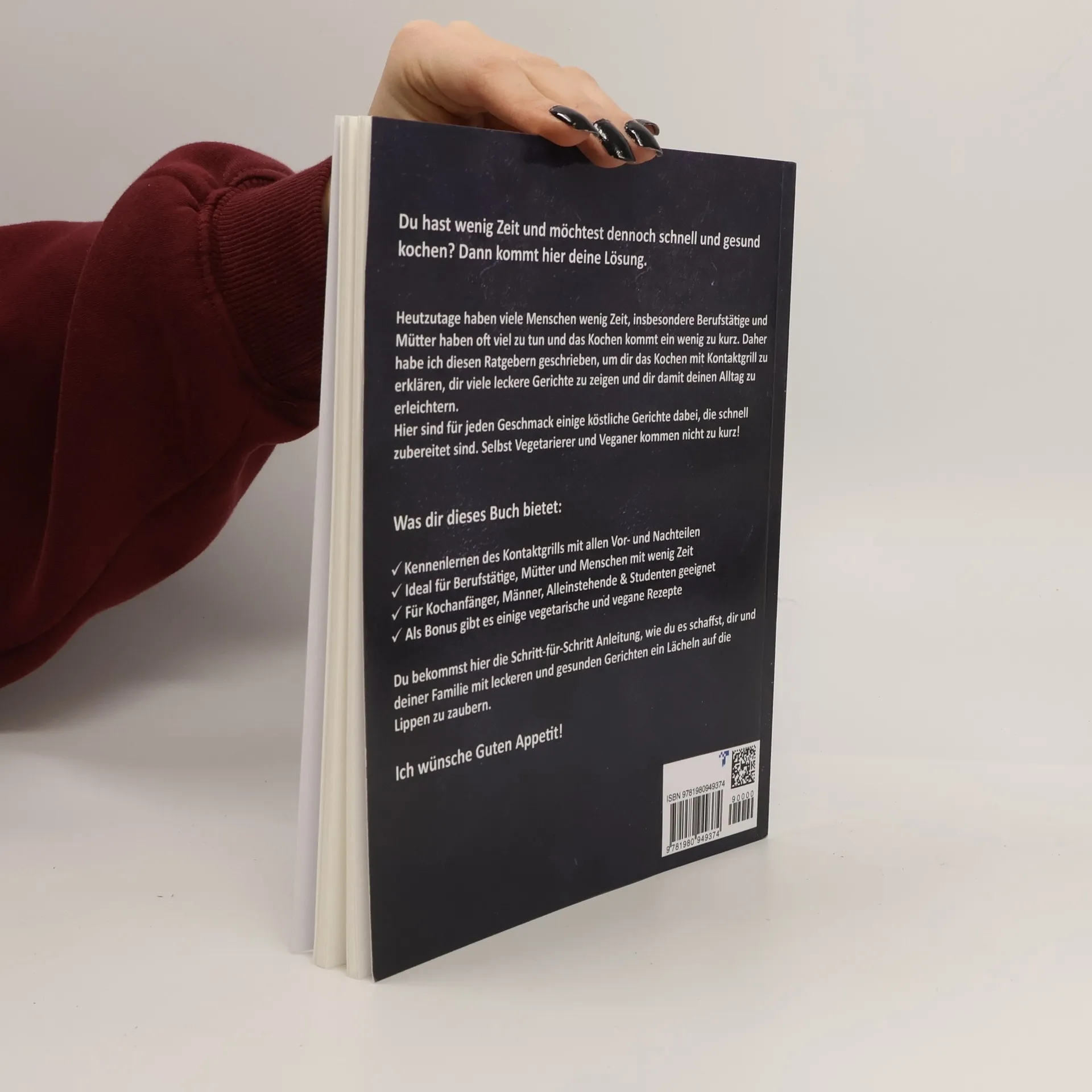 Heutzutage haben viele Menschen wenig Zeit , insbesondere Berufstätige und Mütter haben oft viel zu tun und das Kochen kommt ein wenig zu kurz. Daher habe ich diesen Ratgebern geschrieben, um dir das Kochen mit Kontaktgrill zu erklären, dir viele leckere Gerichte zu zeigen und dir damit deinen Alltag zu erleichtern . Hier sind für jeden Geschmack einige köstliche Gerichte dabei , die schnell zubereitet sind. Selbst Vegetarierer und Veganer kommen nicht zu kurz! Was dir dieses Buch Du bekommst hier die Schritt-für-Schritt Anleitung , wie du es schaffst, dir und deiner Familie mit leckeren Gerichten ein Lächeln auf die Lippen zu zaubern. Mach gleich den ersten Schritt und lese in wenigen Minuten dein E-Book auf deinem Mac, PC, Smartphone, iPhone oder Tablet. Gerne kannst du dir oben auch die Version als Taschenbuch bestellen.Ich wünsche Guten Appetit!