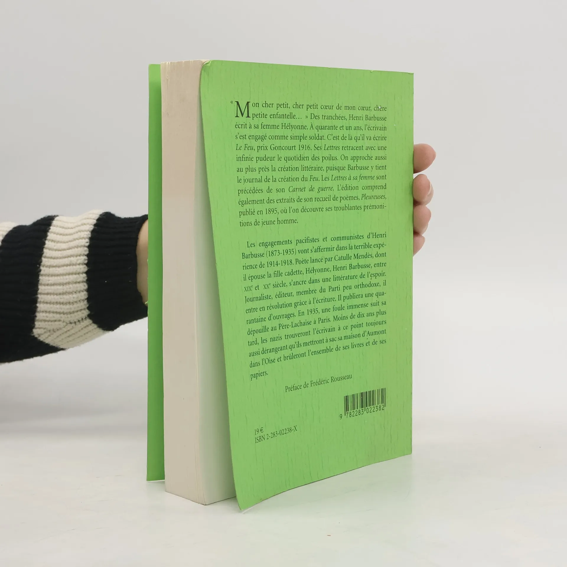 Ces lettres à son épouse Hélyonne retracent le quotidien des tranchées pendant les trois années de son engagement comme simple soldat lors de la Première Guerre mondiale. H. Barbusse raconte à demi-mots l'horreur de la guerre, afin de ne pas inquiéter sa femme.
