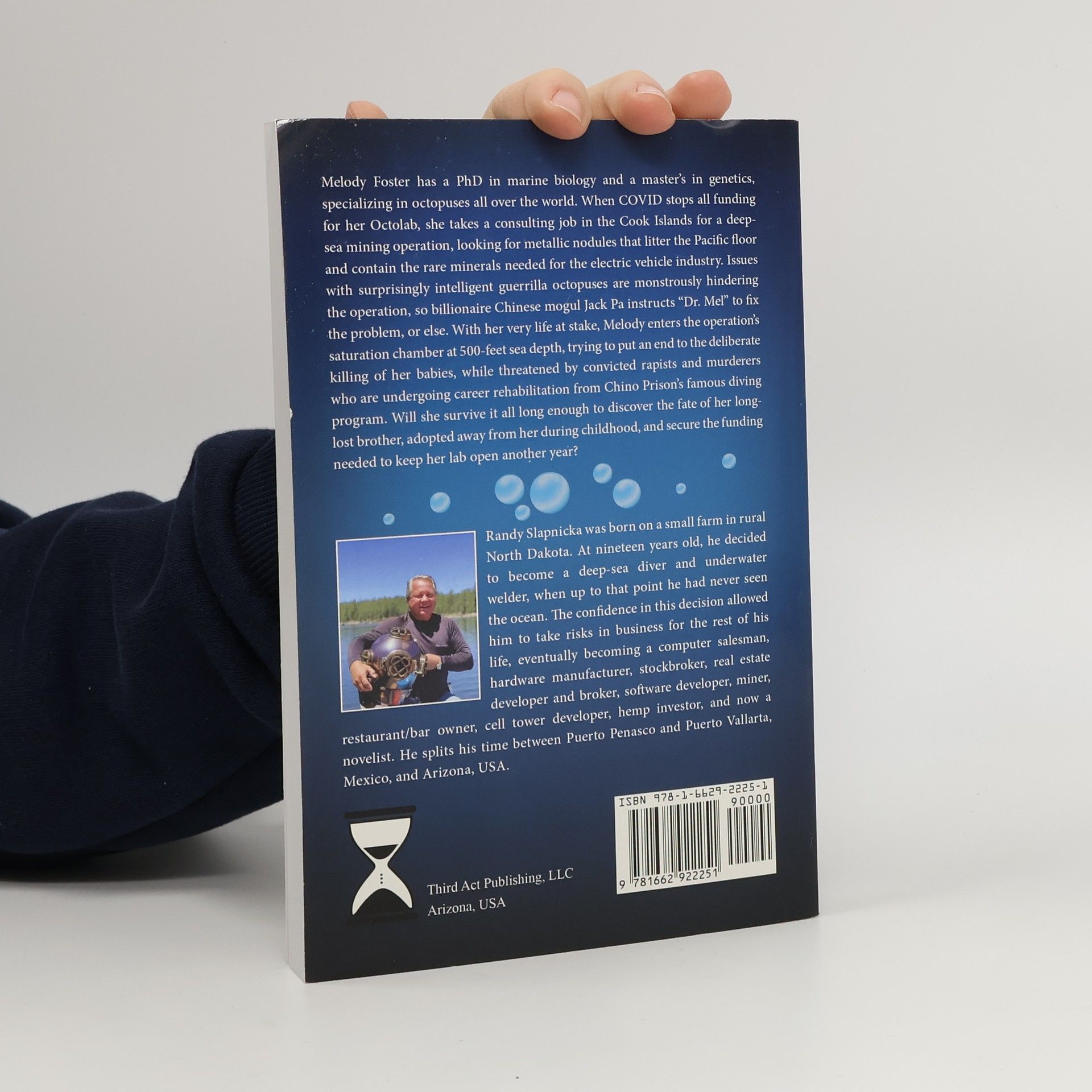 Melody Foster has a PhD in marine biology and a master's in genetics, specializing in octopuses all over the world. When COVID stops all funding for her Octolab, she takes a consulting job in the Cook Islands for a deepsea mining operation, looking for metallic nodules that litter the Pacific floor and contain the rare minerals needed for the electric vehicle industry. Issues with surprisingly intelligent guerrilla octopuses are monstrously hindering the operation, so billionaire Chinese mogul Jack Pa instructs "Dr. Mel" to fix the problem, or else. With her very life at stake, Melody enters the operation's saturation chamber at 500-feet sea depth, trying to put an end to the deliberate killing of her babies, while threatened by convicted rapists and murderers who are undergoing career rehabilitation from Chino Prison's famous diving program. Will she survive it all long enough to discover the fate of her long lost brother, adopted away from her during childhood, and secure the funding needed to keep her lab open another year?