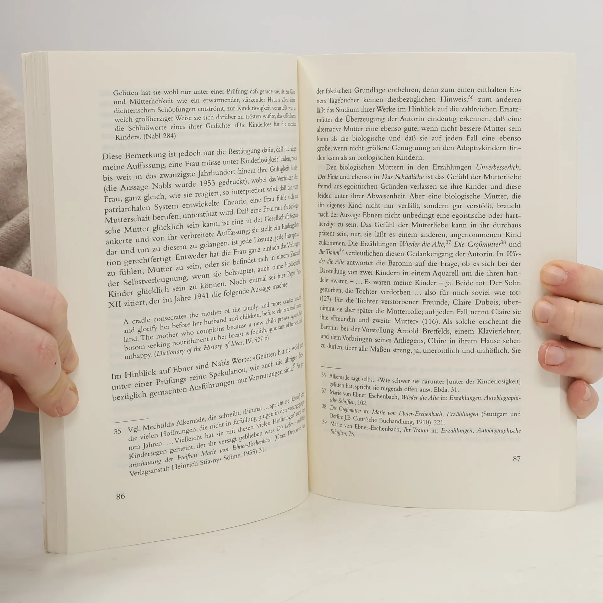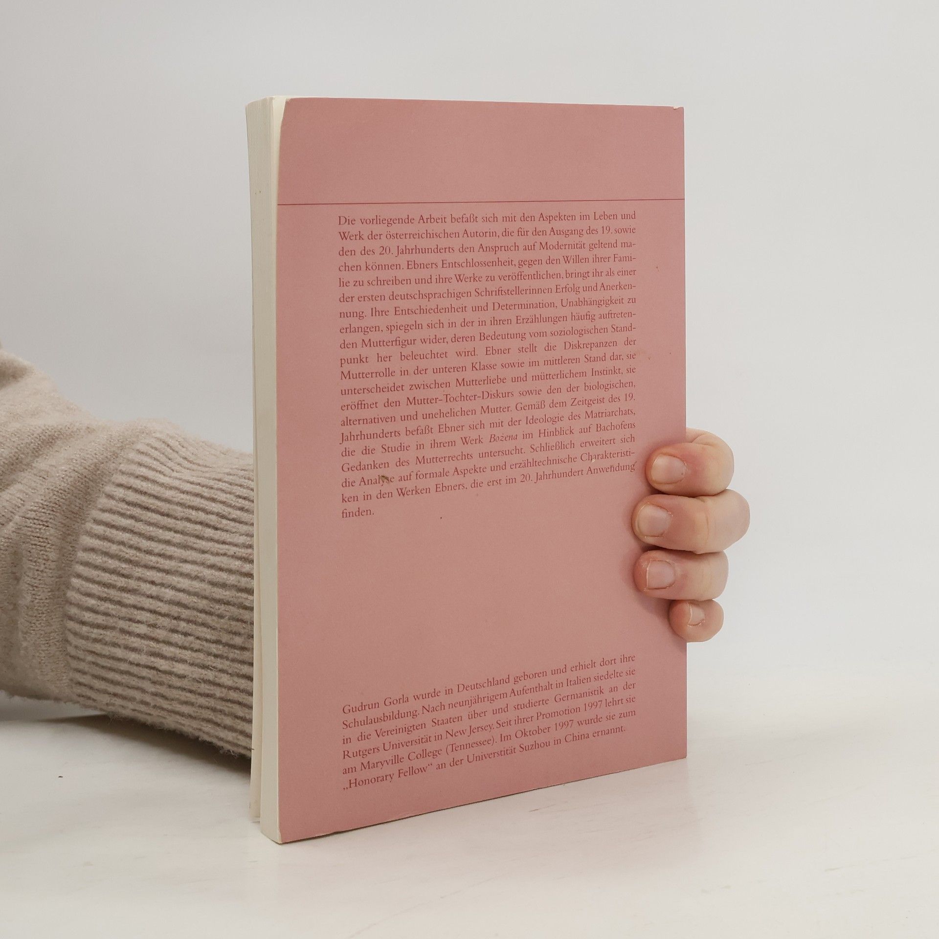 Die vorliegende Arbeit befaßt sich mit den Aspekten im Leben und Werk der österreichischen Autorin, die für den Ausgang des 19. sowie den des 20. Jahrhunderts den Anspruch auf Modernität geltend machen können. Ebners Entschlossenheit, gegen den Willen ihrer Familie zu schreiben und ihre Werke zu veröffentlichen, bringt ihr als einer der ersten deutschsprachigen Schriftstellerinnen Erfolg und Anerkennung. Ihre Entschiedenheit und Determination, Unabhängigkeit zu erlangen, spiegeln sich in der in ihren Erzählungen häufig auftretenden Mutterfigur wider, deren Bedeutung vom soziologischen Standpunkt her beleuchtet wird. Ebner stellt die Diskrepanzen der Mutterrolle in der unteren Klasse sowie im mittleren Stand dar, sie unterscheidet zwischen Mutterliebe und mütterlichem Instinkt, sie eröffnet den Mutter-Tochter-Diskurs sowie den der biologischen, alternativen und unehelichen Mutter. Gemäß dem Zeitgeist des 19. Jahrhunderts befaßt Ebner sich mit der Ideologie des Matriarchats, die die Studie in ihrem Werk Bozena im Hinblick auf Bachofens Gedanken des Mutterrechts untersucht. Schließlich erweitert sich die Analyse auf formale Aspekte und erzähltechnische Charakteristiken in den Werken Ebners, die erst im 20. Jahrhundert Anwendung finden.