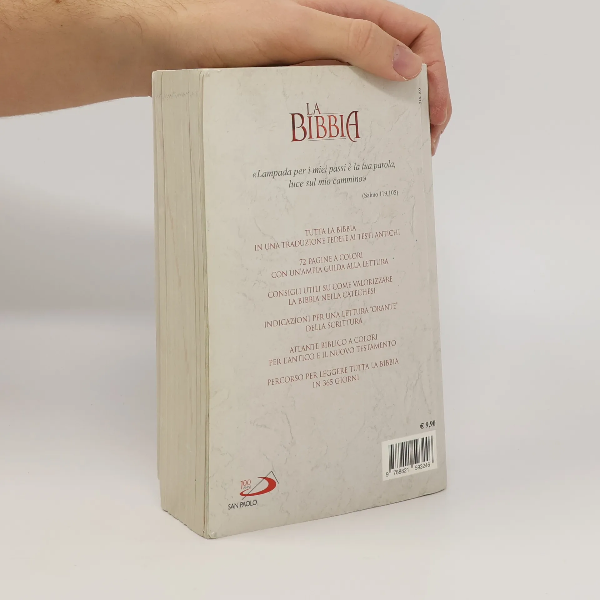 In un’epoca ricca di grandi cambiamenti per la Chiesa, in cui molti si riaccostano alla fede o la scoprono per la prima volta, il gruppo editoriale San Paolo celebra il centesimo anniversario della Famiglia Paolina con una nuova edizione della Bibbia, accessibile a tutti. 72 pagine a colori con introduzione generale alla lettura, cartine, ricostruzioni. E poi introduzioni ai singoli libri, note al testo: tutto ciò che occorre a chi s’avvicina per la prima volta alla Parola di Dio. La Bibbia ogni giorno: un percorso guidato per leggere tutta la Bibbia in 365 giorni. La Bibbia per la catechesi: la guida alla lettura fornisce ai catechisti preziose indicazioni per spiegare il testo biblico. La Bibbia per la lettura orante: semplice, completa, recepisce le esortazioni di papa Francesco per una lettura orante, personale e comunitaria, del testo biblico. La Bibbia per tutti: ideale per i gruppi parrocchiali, i giovani, la formazione pastorale. La nuova Bibbia San Paolo con guida alla lettura a colori.