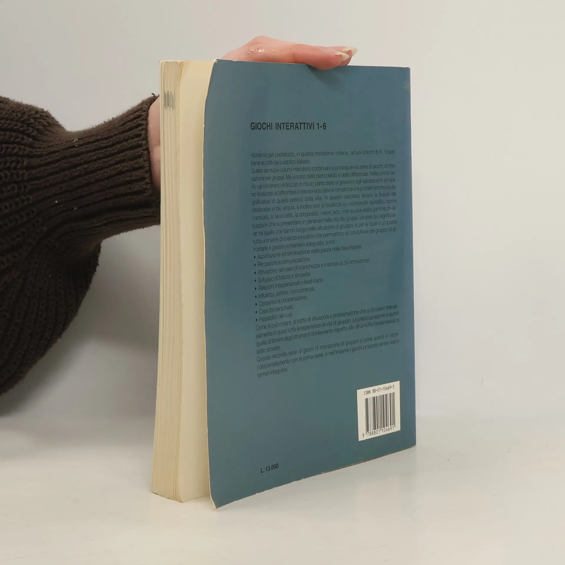 I giochi psicologici "di interazione" offrono nuove modalità di lavoro e intervento nel gruppo, per una piena utilizzazione delle sue potenzialità. I temi sviluppati da questo e dagli altri volumi dell'opera accettazione ed eliminazione della paura nella fase iniziale; percezione e comunicazione; attivazione nel caso di stanchezza e mancanza di motivazione; sviluppo di fiducia e sincerità; relazioni interpersonali e feed-back; influenza, potere, concorrenza; consenso e cooperazione; crescita personale; flessibilità dei ruoli.