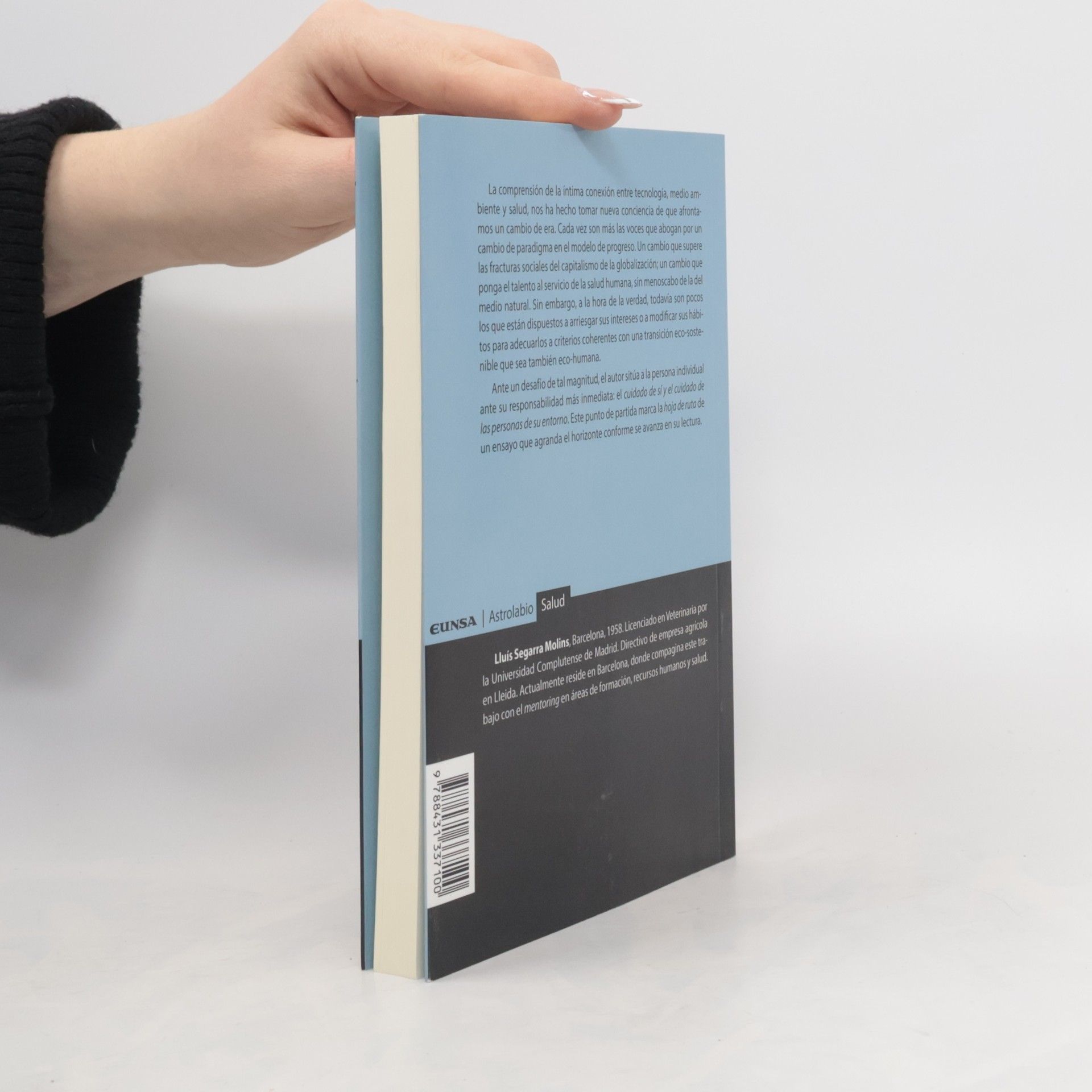 La comprensión de la íntima conexión entre tecnología, medio ambiente y salud, nos ha hecho tomar nueva conciencia de que afrontamos un cambio de era. Cada vez son más las voces que abogan por un cambio de paradigma en el modelo de progreso. Un cambio que supere las fracturas sociales del capitalismo de la globalización; un cambio que ponga el talento al servicio de la salud humana, sin menoscabo de la del medio natural. Sin embargo, a la hora de la verdad, todavía son pocos los que están dispuestos a arriesgar sus intereses o a modificar sus hábitos para adecuarlos a criterios coherentes con una transición eco-sostenible que sea también eco-humana. Ante un desafío de tal magnitud, el autor sitúa a la persona individual ante su responsabilidad más el cuidado de sí y el cuidado de las personas de su entorno. Este punto de partida marca la hoja de ruta de un ensayo que agranda el horizonte conforme se avanza en su lectura.