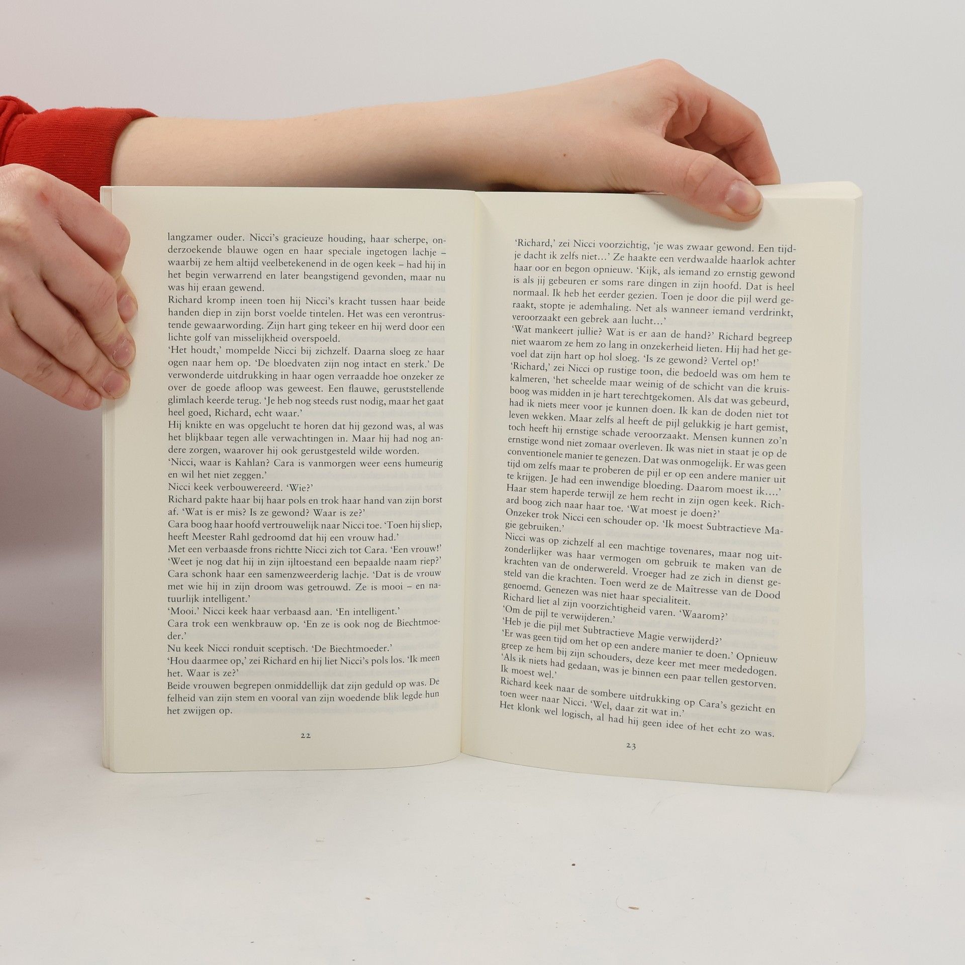Richard Cypher, Heer Rahl, de Zoeker, heerser over D'Hara en drager van het Zwaard van de Waarheid, raakt op het slagveld ernstig gewond.Dankzij de goede zorgen van de tovenares Nicci komt hij algauw weer tot bewustzijn, om tot zijn grote schrik en verbijstering te horen te krijgen dat zijn geliefde vrouw Kahlan spoorloos is.Erger nog, niemand kan zich haar herinneren - het is alsof Kahlan nooit heeft bestaan.Zo, spannend en aangrijpend tegelijk, begint het alweer negende deel van het machtige fantasy-epos De Wetten van de Magie.