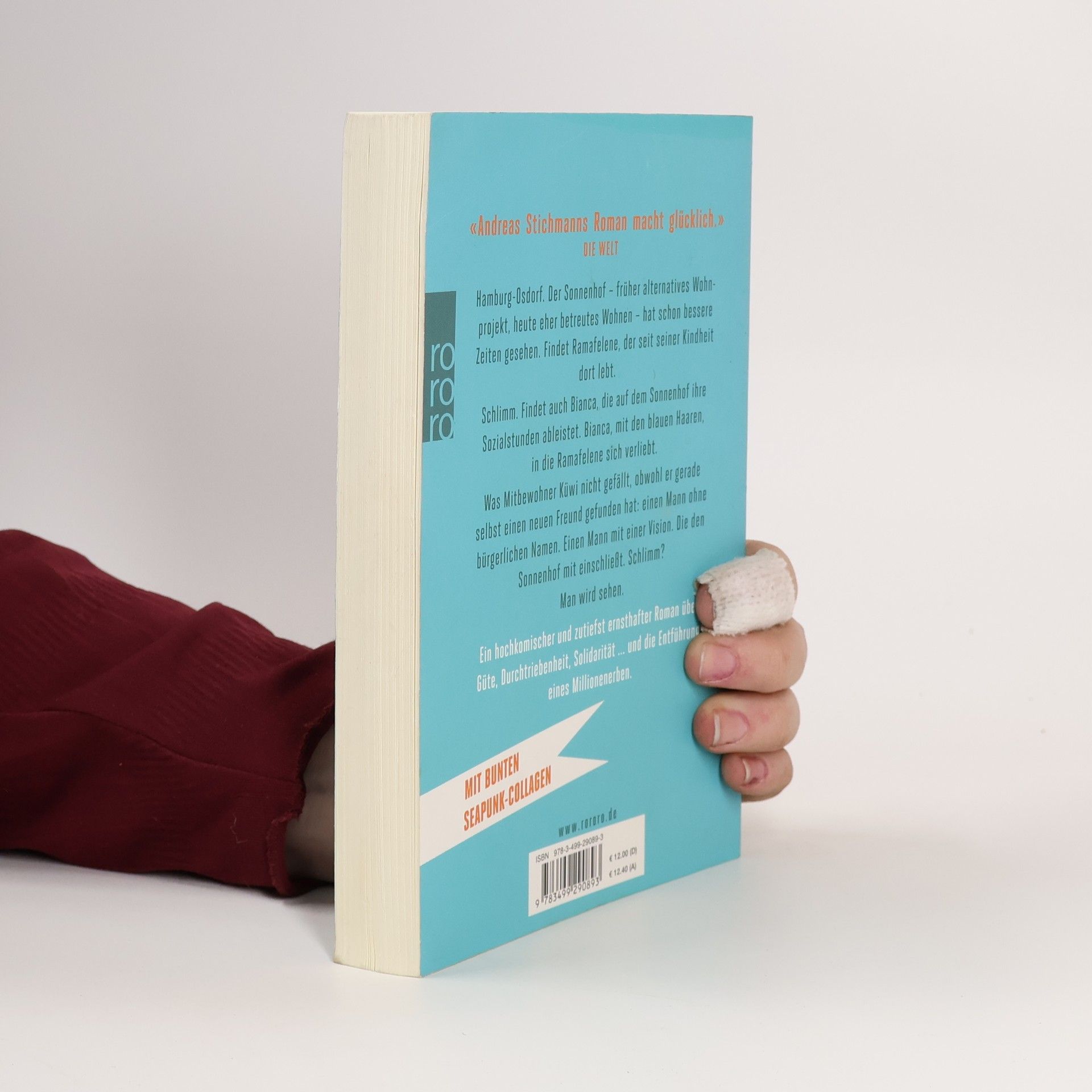 «Andreas Stichmanns Roman macht glücklich.» DIE WELT Hamburg-Osdorf. Der Sonnenhof – früher alternatives Wohnprojekt, heute eher betreutes Wohnen – hat schon bessere Zeiten gesehen. Findet Ramafelene, der seit seiner Kindheit dort lebt. Schlimm. Findet auch Bianca, die auf dem Sonnenhof ihre Sozialstunden ableistet. Bianca, mit den blauen Haaren, in die Ramafelene sich verliebt. Was Mitbewohner Küwi nicht gefällt, obwohl er gerade selbst einen neuen Freund gefunden hat: einen Mann ohne bürgerlichen Namen. Einen Mann mit einer Vision. Die den Sonnenhof miteinschließt. Schlimm? Man wird sehen. Ein hochkomischer und zutiefst ernsthafter Roman über Güte, Durchtriebenheit, Solidarität ... und die Entführung eines Millionenerben.