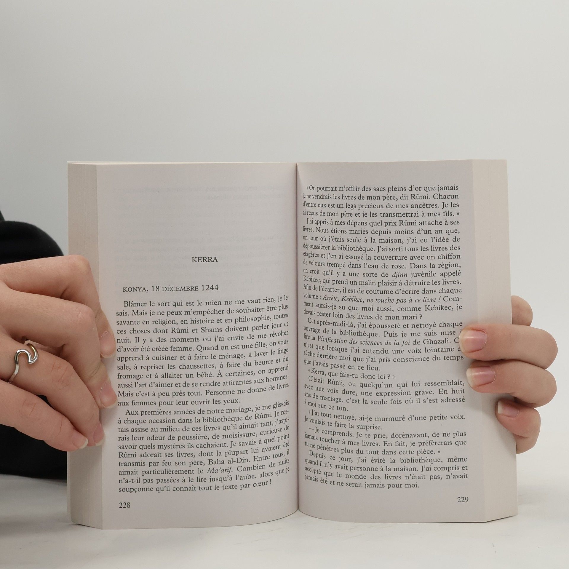 Ella Rubinstein a en apparence tout pour être heureuse : une jolie maison dans le Massachusetts, trois beaux enfants, un chien fidèle. Mais, à l'aube de ses quarante ans, elle se demande si elle n'est pas passée à côté d'elle-même. Les infidélités de son mari ne sont plus un mystère et les cours de cuisine du jeudi ne suffisent pas à exalter sa vie monotone. Décidée à reprendre une activité professionnelle, elle est engagée comme lectrice par un agent littéraire. Sa première mission : rédiger une note sur un manuscrit signé par Aziz Z Zahara. Ce roman, qui retrace la rencontre entre le poète Rûmi et le plus célèbre derviche du monde musulman, Shams de Tabriz, va être une révélation pour Ella. Au fil des pages, elle découvre le soufisme, le refus des conventions et la splendeur de l'amour. Cette histoire se révèle être le miroir de la sienne. Aziz - comme Shams l'a fait pour Rûmi sept siècles auparavant - serait-il venu la libérer ?