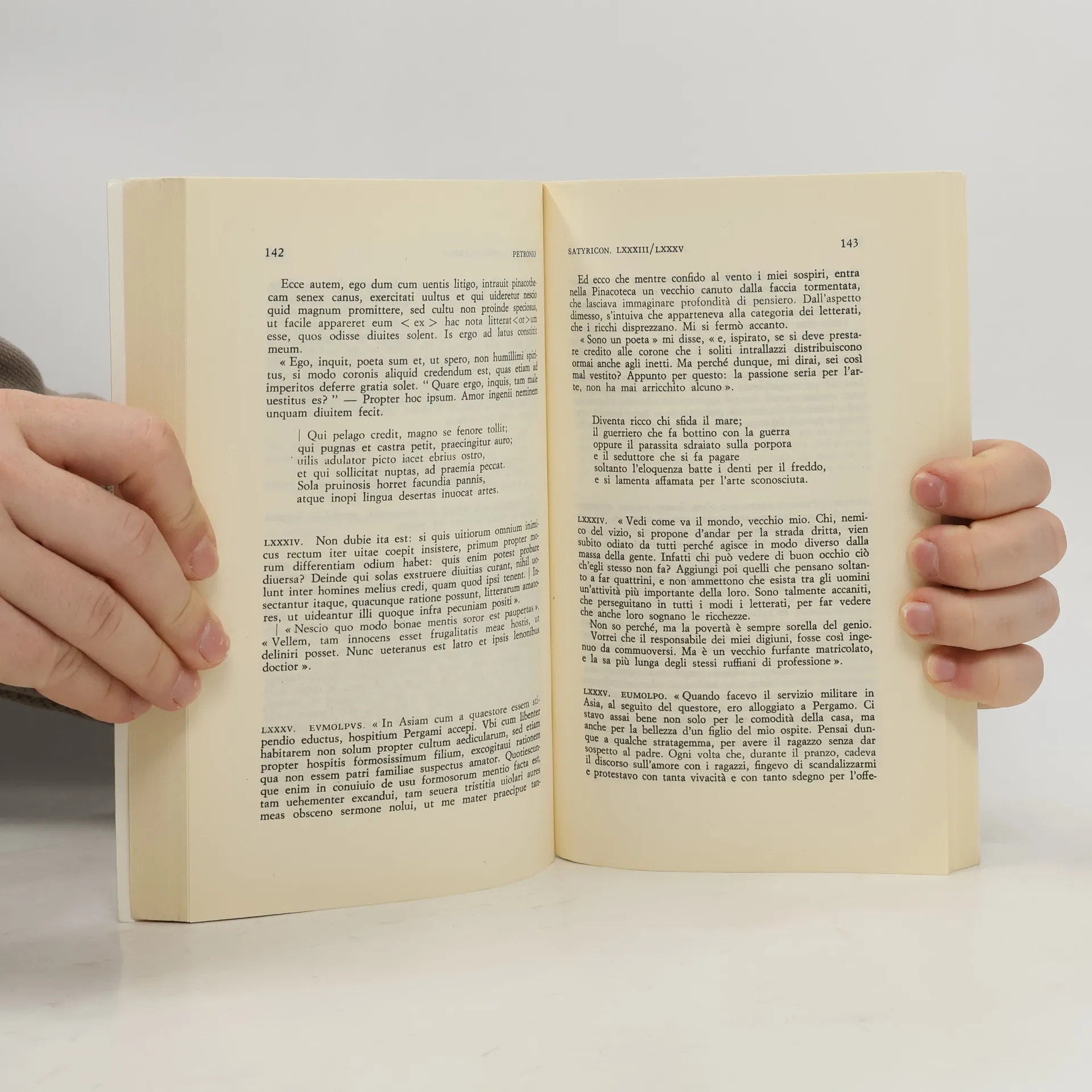 Scritto nel linguaggio diretto e colloquiale tipico del volgo, il Satyricon, misto di prosa e di poesia, è molto più di un'audace e brillante parodia del romanzo greco d'amore e d'avventura: attraverso le vicende di Encolpio e Ascilto, coppia "irregolare", si viene infatti illuminando lo straordinario affresco di una Roma imperiale brulicante di arricchiti, matrone lussuriose, poetastri e parassiti. Giocando con apparente noncuranza con le infinite possibilità narrative di imprevisti e bizzarri richiami e affinità sottili e sorprendenti, Petronio si avvale di un gusto compiaciuto e divertito dello scrivere che gli consente una particolare felicità espressiva che oscillante ironicamente tra il virtuosismo stilistico e la concretezza descrittiva. Il capolavoro parodistico e satirico della latinità: l'opera con cui "l'arbitro del gusto" ci ha lasciato un quadro insuperato della sensualità pagana e una chiave di lettura sottile e arguta dei sintomi di decadenza dell'impero romano.