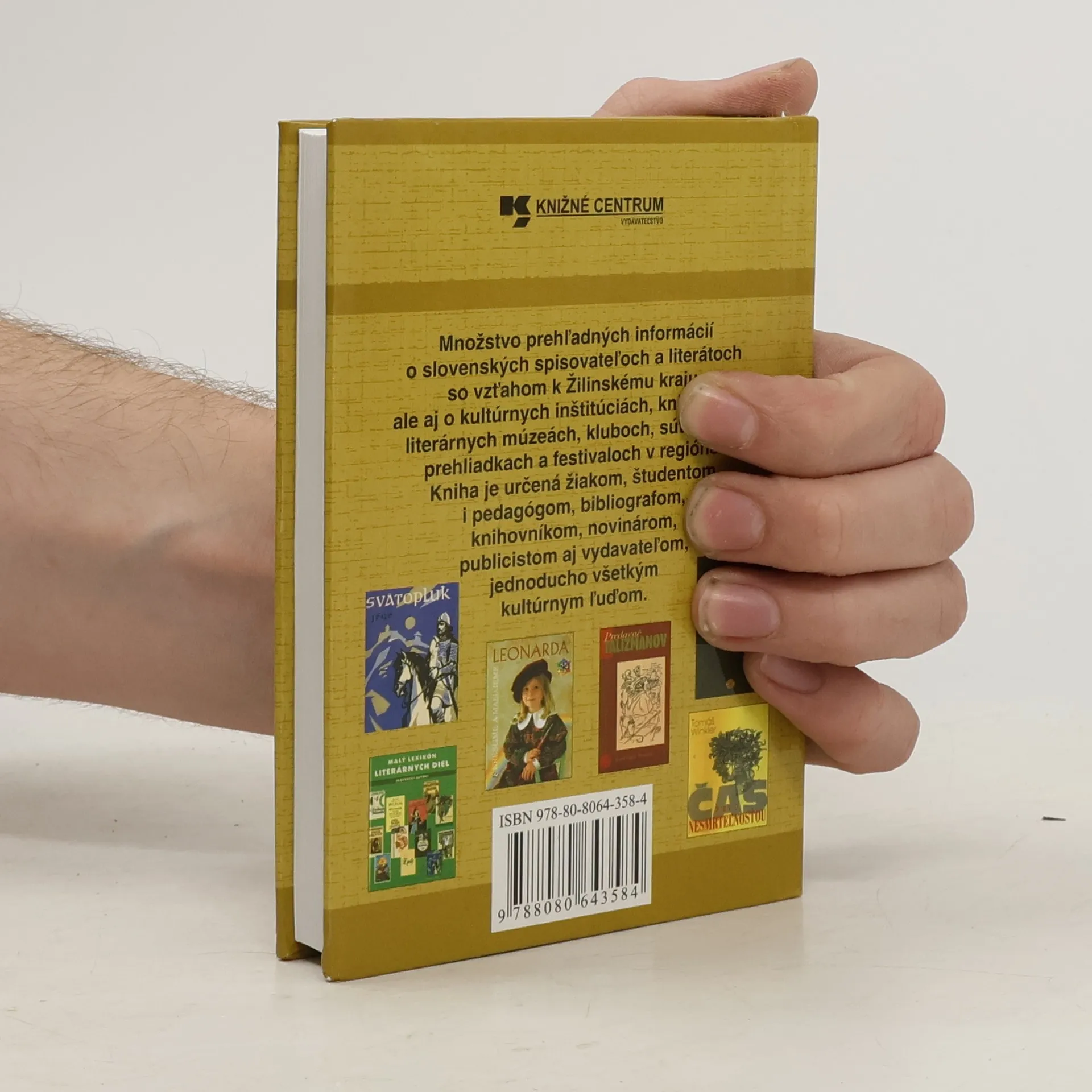 Množstvo prehľadných informácií o slovenských spisovateľoch a literátoch so vzťahom k Žilinskému kraju, ale aj o kultúrnych inštitúciách, knižniciach, literárnych múzeách, kluboch, súťažiach, prehliadkach a festivaloch v regióne. Kniha je určená žiakom, študentom i pedagógom, bibliografom, knihovníkom, novinárom, publicistom aj vydavateľom, jednoducho všetkým kultúrnych ľuďom.