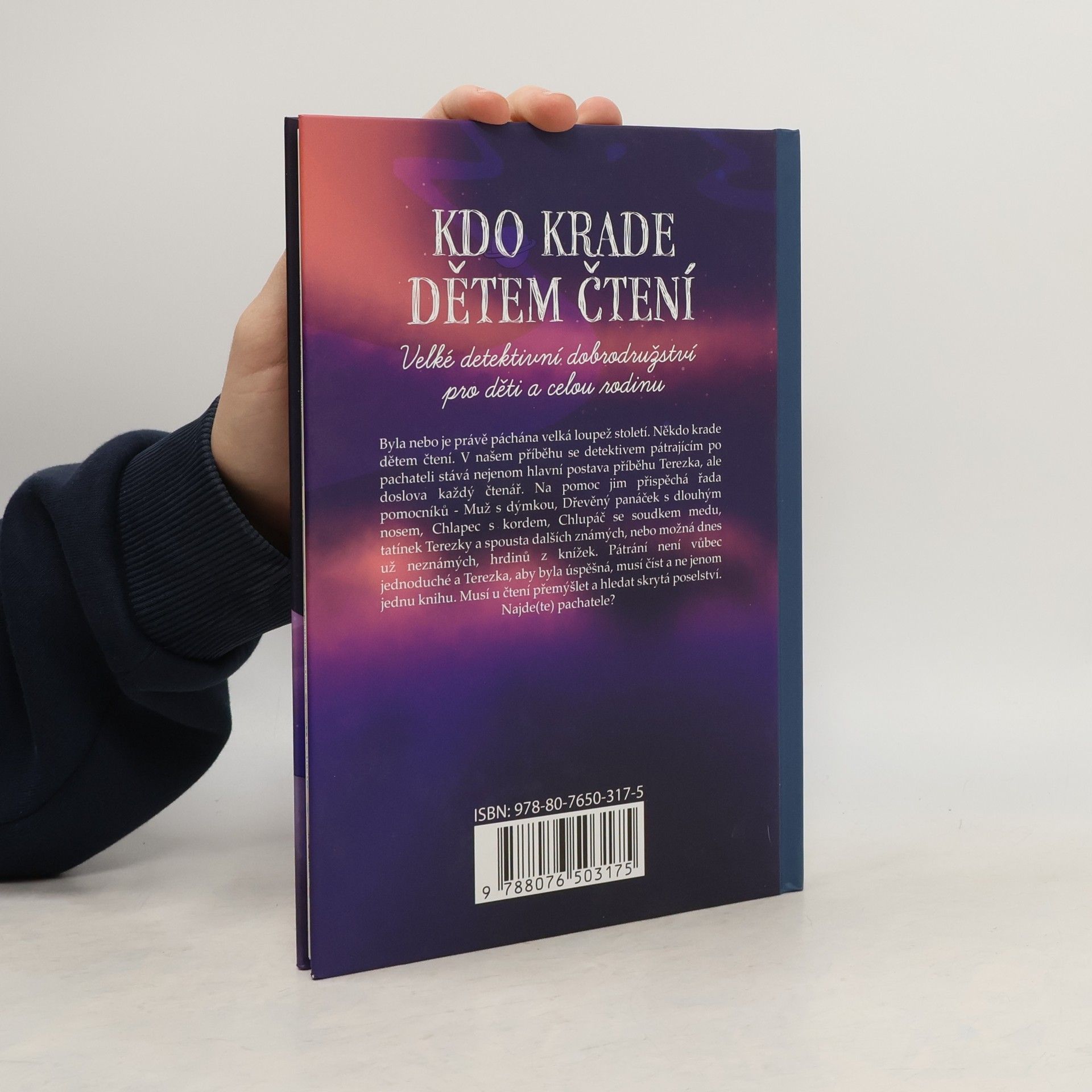 Právě probíhá velká loupež století! Dětem někdo krade čtení. Detektivem pátrajícím po pachateli se kromě hlavní postavy Terezky můžete stát i vy. Na pomoc vám přispěchá řada pomocníků – Muž s dýmkou, Dřevěný panáček s dlouhým nosem, Chlapec s kordem, Chlupáč se soudkem medu a spousta dalších hrdinů z knížek. Pátrání ale nebude vůbec jednoduché. Aby byla Terezka úspěšná, bude muset číst. A to ne jenom jednu knihu. U čtení navíc bude muset přemýšlet a hledat skrytá poselství. Podaří se vám spolu s ní najít pachatele?