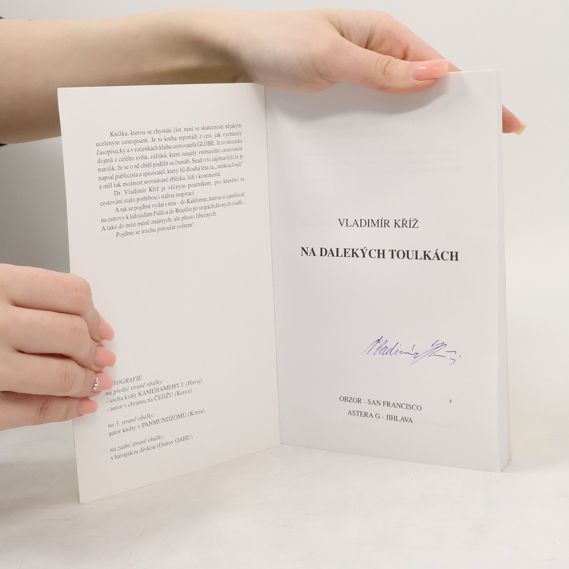 Kniha reportáží z cest, jak vycházely časopisecky a v ročenkách Klubu cestovatelů Globe. Mozaika z cest po Kalifornii, Mexiku, Kostarice, Fidži, Tahiti, Austrálii a mnoha dalších zemích. Doplnĕno fotografiemi.