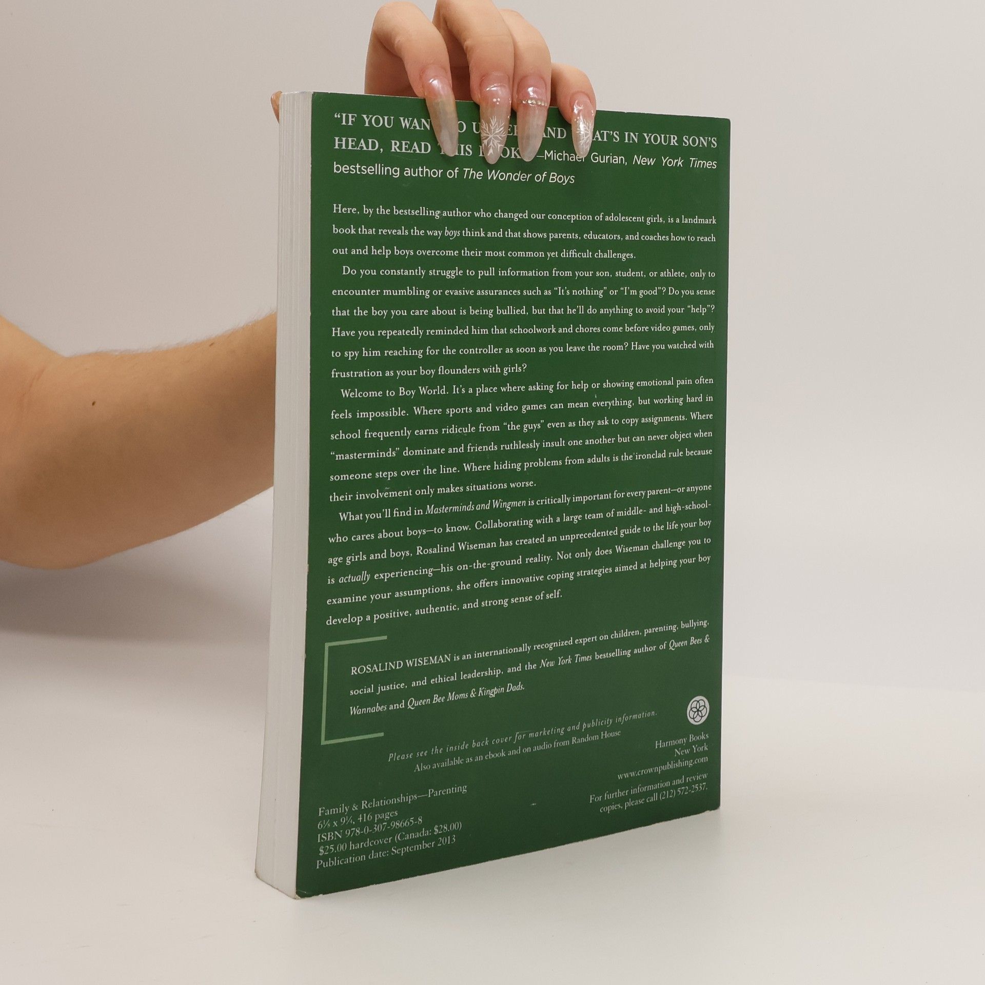 <b>Books for a Better Life Award Winner</b> Here is a landmark book that reveals the way boys think and that shows parents, educators and coaches how to reach out and help boys overcome their most common yet difficult challenges -- by the bestselling author who changed our conception of adolescent girls. Do you constantly struggle to pull information from your son, student, or athlete, only to encounter mumbling or evasive assurances such as “It’s nothing” or “I’m good?” Do you sense that the boy you care about is being bullied, but that he’ll do anything to<i> </i>avoid your “help?” Have you repeatedly reminded him that schoolwork and chores come before video games only to spy him reaching for the controller as soon as you leave the room? Have you watched with frustration as your boy flounders with girls? Welcome to Boy World. It’s a place where asking for help or showing emotional pain often feels impossible. Where sports and video games can mean everything, but working hard in school frequently earns ridicule from “the guys” even as they ask to copy assignments. Where “masterminds” dominate and friends ruthlessly insult each other but can never object when someone steps over the line. Where hiding problems from adults is the ironclad rule because their involvement only makes situations worse. Boy world is governed by social hierarchies and a powerful set of unwritten rules that have huge implications for your boy’s relationships, his interactions with you, and the man he’ll become. If you want what’s<i> </i>best for him, you need to know what these rules are and how to work with them effectively. What you’ll find in <i>Masterminds and Wingmen </i>is critically important for every parent – or <i>anyone </i>who cares about boys – to know. Collaborating with a large team of middle- and high-school-age editors, Rosalind Wiseman has created an unprecedented guide to the life your boy is <i>actually</i> experiencing – his on-the-ground reality. Not only does Wiseman challenge you to examine your assumptions, she offers innovative coping strategies aimed at helping your boy develop a positive, authentic, and strong sense of self.