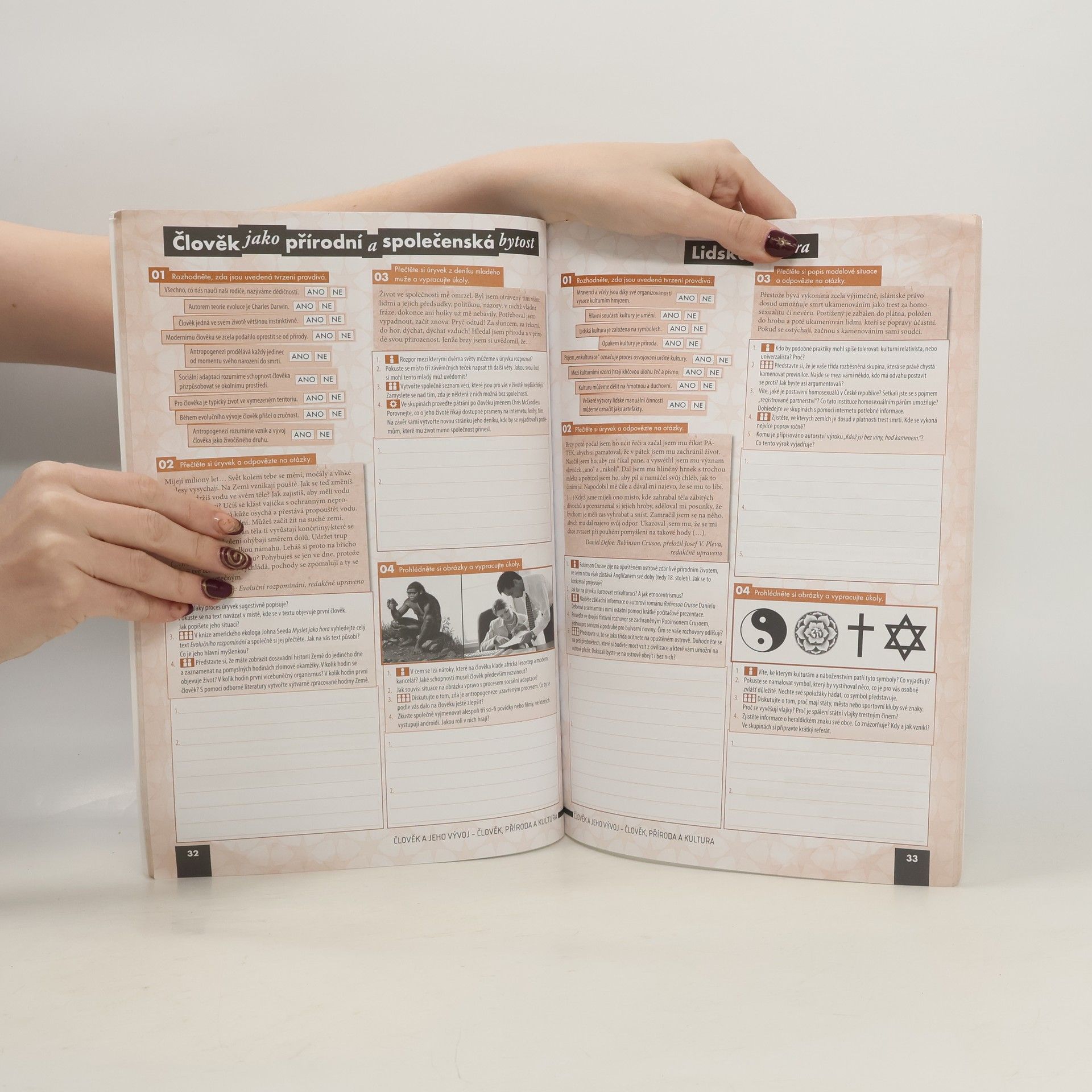 Pracovní sešit je navržen jako jednotný celek s učebnicí, přičemž se předpokládá jejich kombinované využití ve výuce. Ověřuje a prohlubuje znalosti klíčového učiva a spojuje vybrané problematiky s každodenním životem. Cvičení podporují rozvoj dovedností a klíčových kompetencí žáků a splňují požadavky Rámcového vzdělávacího programu pro gymnaziální a střední odborné vzdělávání. Struktura sešitu odpovídá učebnici, obsahuje shodné tematické celky, kapitoly a podkapitoly, přičemž jednotlivá cvičení odkazují na výkladové části učebnice. Každý tematický celek zahrnuje dvoustránkové Opakování, které ověřuje znalost klíčových pojmů a problémů a je zpracováno podle typů cvičení, které odpovídají maturitní zkoušce. Sešit nabízí širokou škálu cvičení, včetně klasických faktografických úloh a aktivit zaměřených na práci s textem, posuzování modelových situací a identifikaci problémů. Zadání kombinují individuální, párovou a skupinovou práci, a zahrnují podněty pro dlouhodobější projekty. Důraz je kladen na spolupráci studentů a jejich sebevyjádření formou diskusí a písemných prací. Většinu cvičení mohou studenti vypracovat přímo do sešitu, což podporuje práci s různými informačními zdroji a kritické zhodnocení jejich spolehlivosti. Grafické zpracování zvyšuje přehlednost a systematičnost textů a formálně odlišuje typy cvičení a formy práce studentů.
