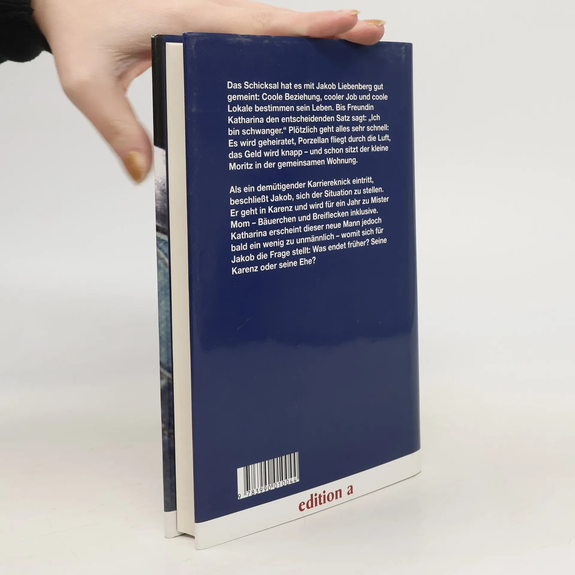 Das Schicksal hat es mit Jakob Liebenberg gut gemeint: Coole Beziehung, cooler Job und coole Lokale bestimmen sein Leben. Bis Freundin Katharina den entscheidenden Satz sagt: „Ich bin schwanger.“ Plötzlich geht alles sehr schnell: Es wird geheiratet, Porzellan fliegt durch die Luft, das Geld wird knapp – und schon sitzt der kleine Moritz in der gemeinsamen Wohnung. Als ein demütigender Karriereknick eintritt, beschließt Jakob, sich der Situation zu stellen. Er geht in Karenz und wird für ein Jahr zu Mister Mom – Bäuerchen und Breiflecken inklusive. Katharina erscheint dieser neue Mann jedoch bald ein wenig zu unmännlich – womit sich für Jakob die Frage stellt: Was endet früher? Seine Karenz oder seine Ehe?