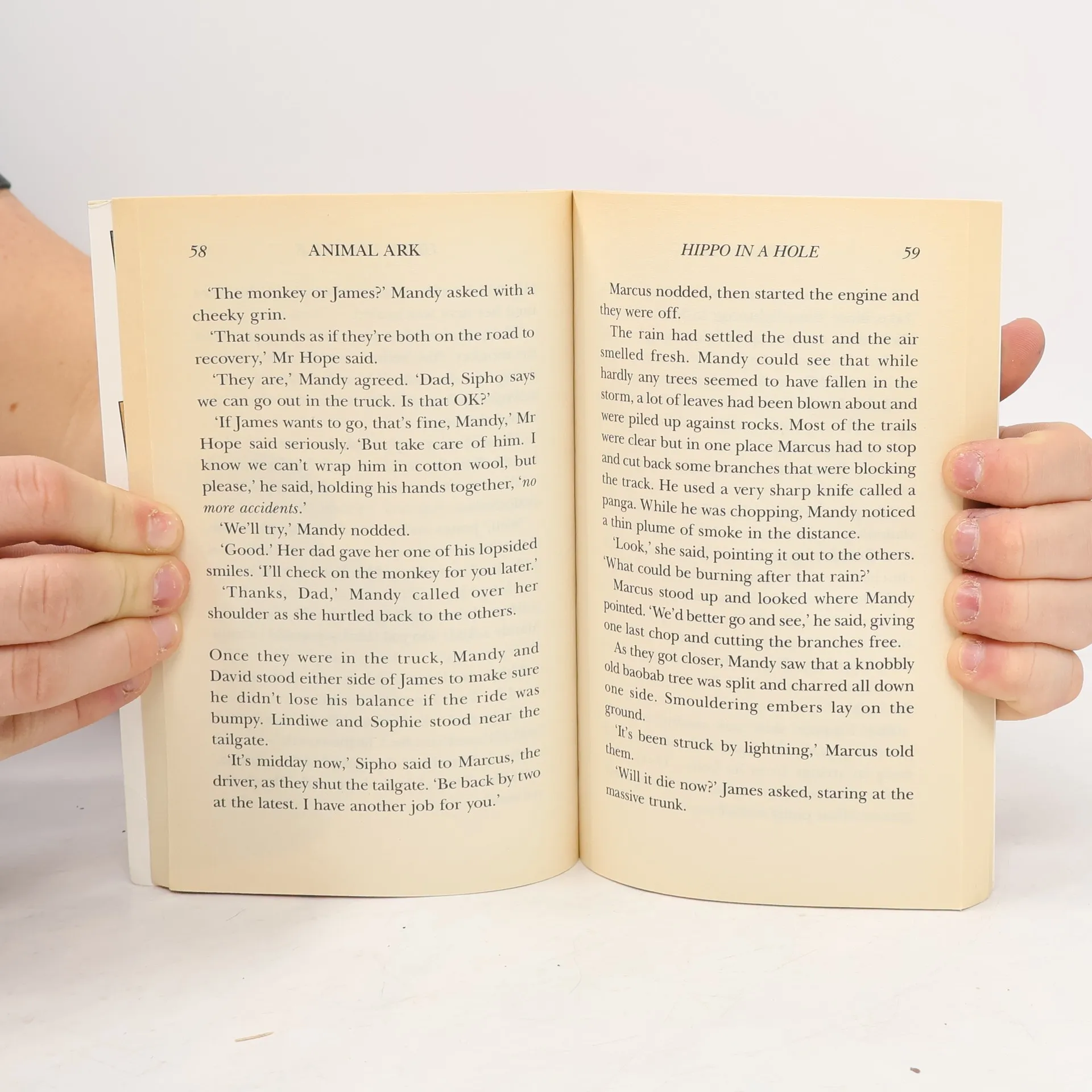 A family trip to South Africa means going on safari for Mandy Hope and her brother James. But a violent storm causes chaos and Mandy and James find a mother hippo in distress, standing guard over her trapped calf. The warden's rescue attempt fails - can Mandy help the hippos?