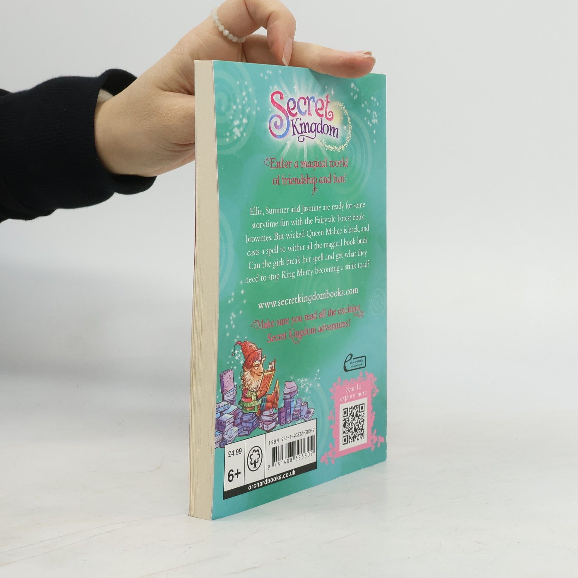 From the author's website:<br /><br />Ellie, Summer and Jasmine are all ready for some story-time fun with the book brownies at Fairytale Forest. <br /><br />But Queen Malice is up to no good again, and she casts a spell to wither all the books buds growing on the trees. <br /><br />Can the girls find a way to break her spell and get the book buds they need to stop King Merry from becoming a stink toad?