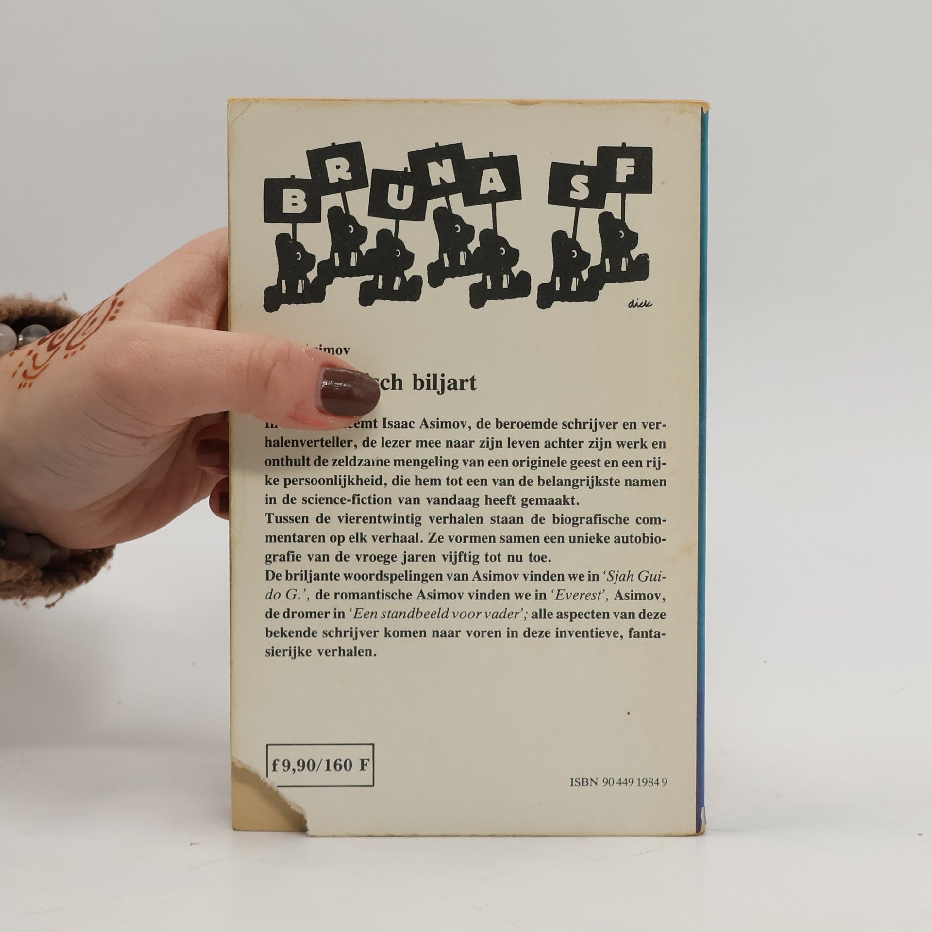 In dit boek neemt Isaac Asimov, de beroemde schrijver en verhalenverteller, de lezer mee naar zijn leven achter zijn werk en onthult de zeldzame mengeling van een originele geest en een rijke persoonlijkheid, die hem tot een van de belangrijkste namen in de science-fiction van vandaag heeft gemaakt. Tussen de vierentwintig verhalen staan de biografische commentaren op elk verhaal. Ze vormen samen een unieke autobiografie van de vroege jaren vijftig tot nu toe. De briljante woordspelingen van Asimov vinden we in ‘Sjah Guido G. de romantische Asimov vinden we in ‘Everest’, Asimov, de dromer in ‘Een standbeeld voor vader’; alle aspecten van deze bekende schrijver komen naar voren in deze inventieve, fantasierijke verhalen.