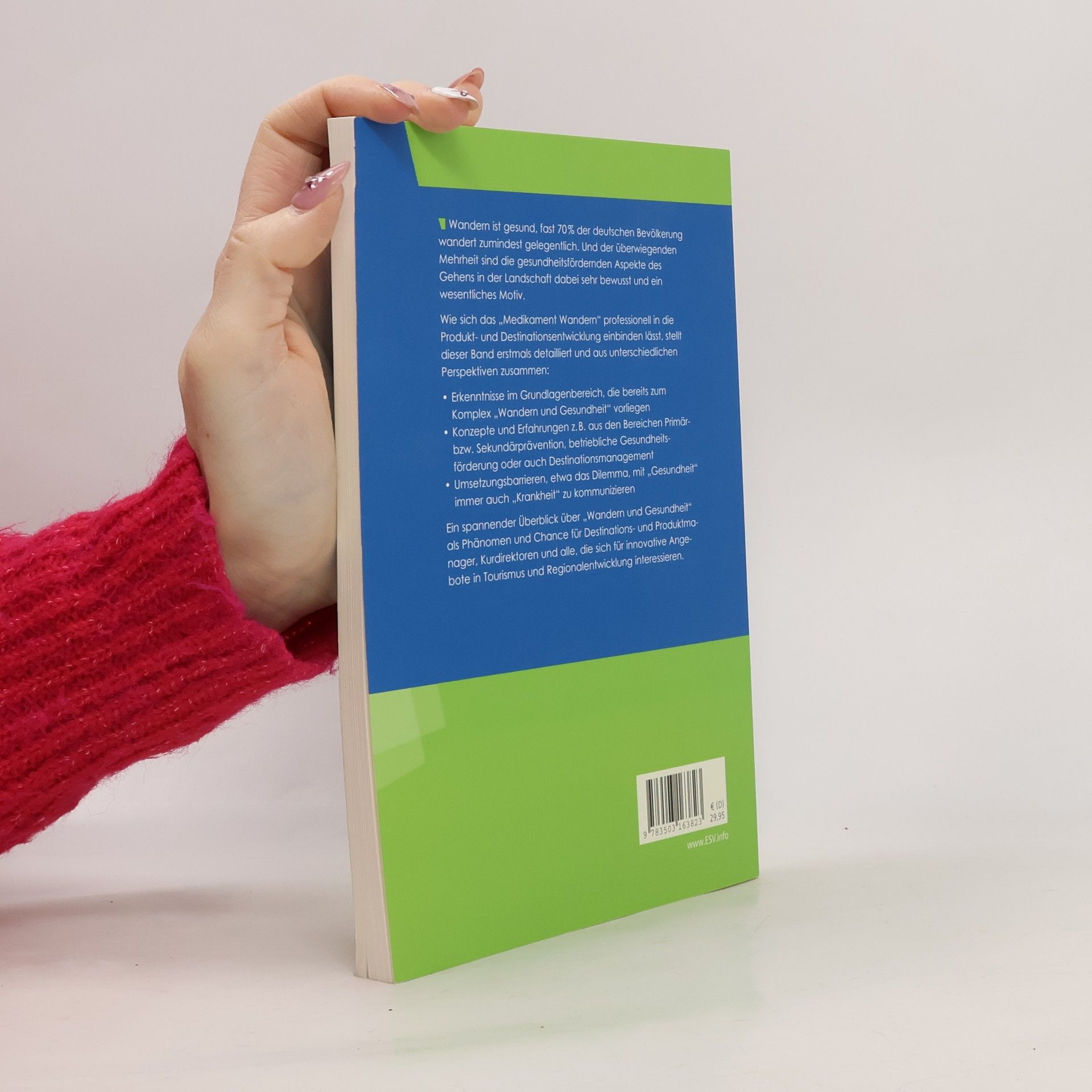 Wandern ist gesund, fast 70% der deutschen Bevölkerung wandert zumindest gelegentlich. Und der überwiegenden Mehrheit sind die gesundheitsfördernden Aspekte des Gehens in der Landschaft dabei sehr bewusst und ein wesentliches Motiv. Wie sich das „Medikament Wandern“ professionell in die Produkt- und Destinationsentwicklung einbinden lässt, stellt dieser Band erstmals detailliert und aus unterschiedlichen Perspektiven zusammen. - Erkenntnisse im Grundlagenbereich, die bereits zum Komplex „Wandern und Gesundheit“ vorliegen, - Konzepte und Erfahrungen z. B. aus den Bereichen Primär- bzw. Sekundärprävention, betriebliche Gesundheitsförderung oder auch Destinationsmanagement, - Umsetzungsbarrieren, etwa das Dilemma, mit „Gesundheit“ immer auch „Krankheit“ zu kommunizieren. Ein spannender Überblick über „Wandern und Gesundheit" als Phänomen und Chance für Destinations- und Produktmanager, Kurdirektoren und alle, die sich für innovative Angebote in Tourismus und Regionalentwicklung interessieren.