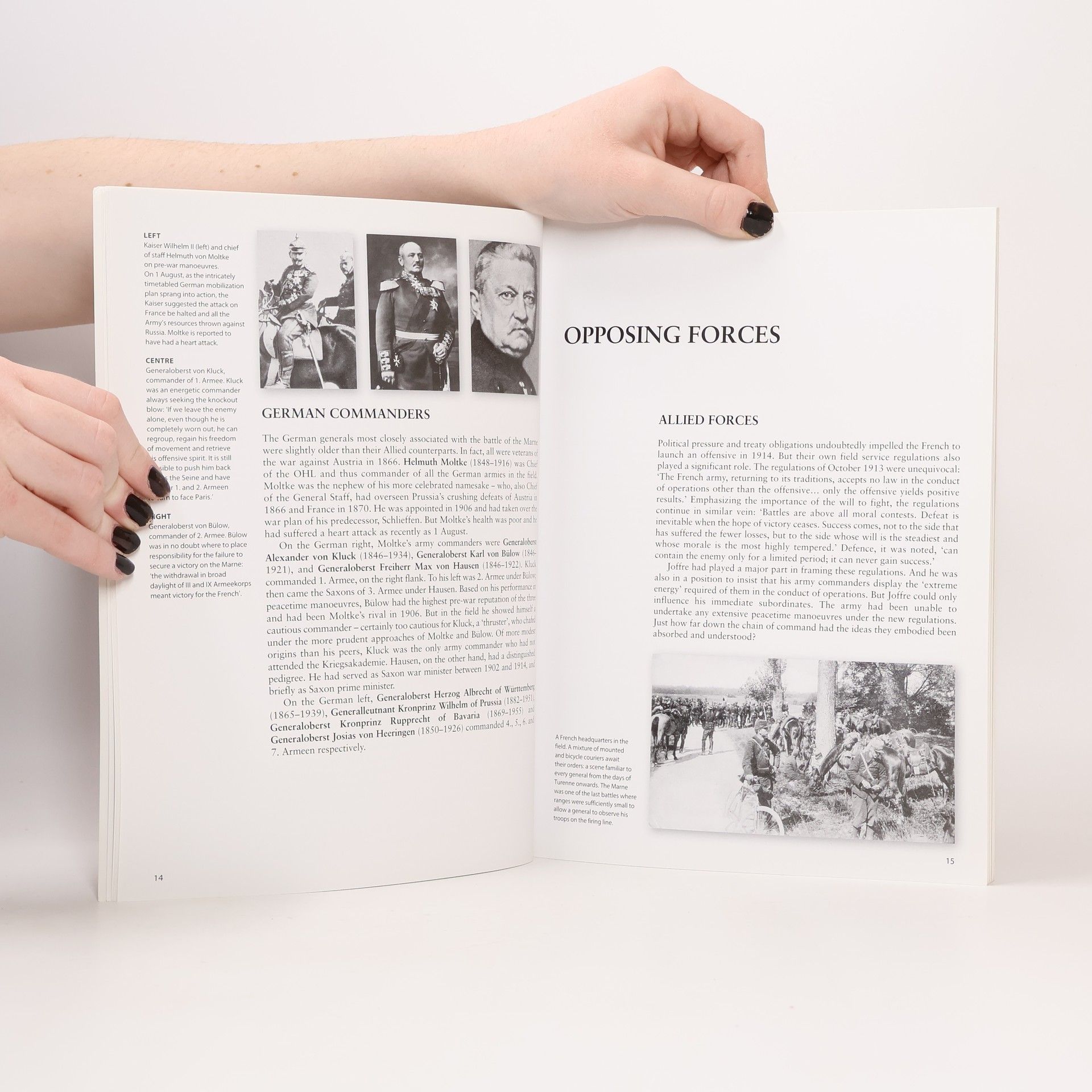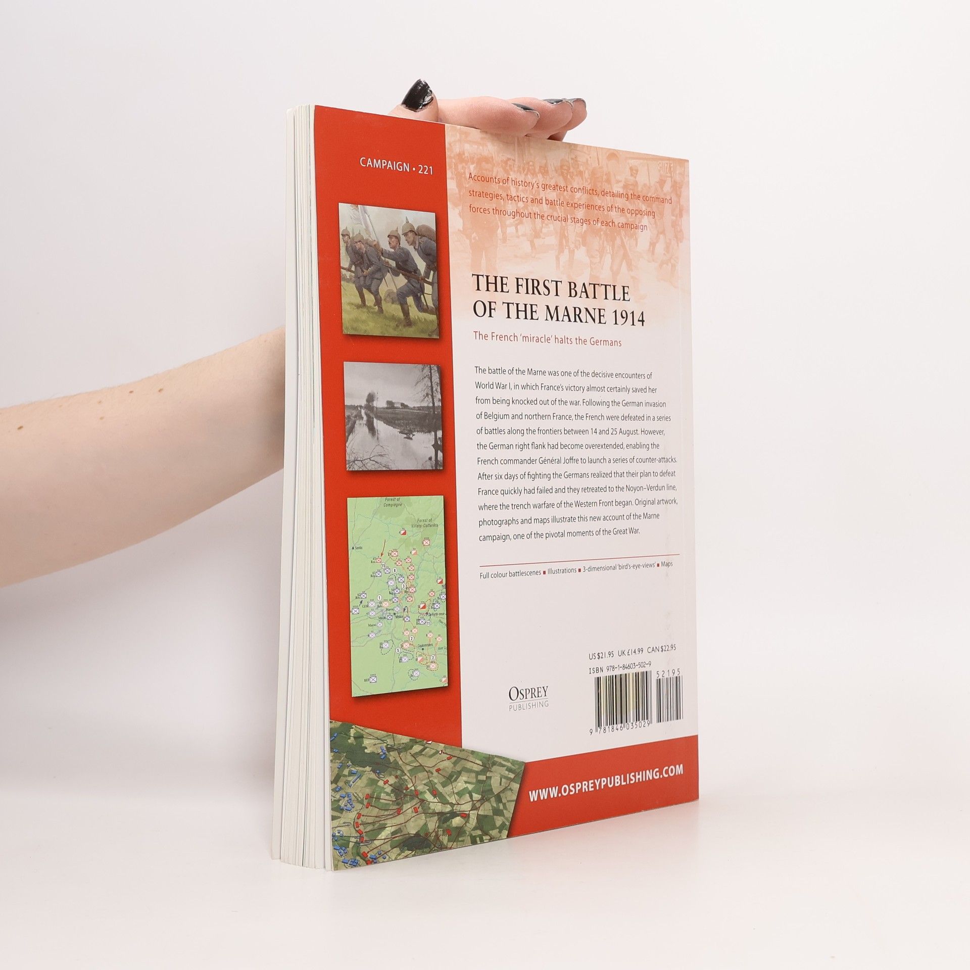 Osprey's study of the Battle of the Marne, which was one of the decisive encounters of World War I (1914-1918), saving France from a catastrophic defeat that would almost certainly have knocked her out of the war. Germany's failure to defeat the French committed her to a war on two fronts, which would lead to trench warfare and the war of attrition that the General Staff had hoped to avoid. The conduct of the battle served to make and break the reputation of commanders and subordinates alike. Although not an decisive defeat, the battle was a strategic Allied victory. Further attempts by each side to outflank the other led to the formation of a continuous front from the North Sea to Switzerland, which set the pattern for the rest of the war.This title presents the origins of the campaign, followed by a brief chronology, before detailing the opposing commanders and armies. It then breaks out the French orders of battle and the German's opposing plans, the outcome of the fighting and the aftermath of the battle. The book concludes with a look at the battlefield today and suggestions for further reading.