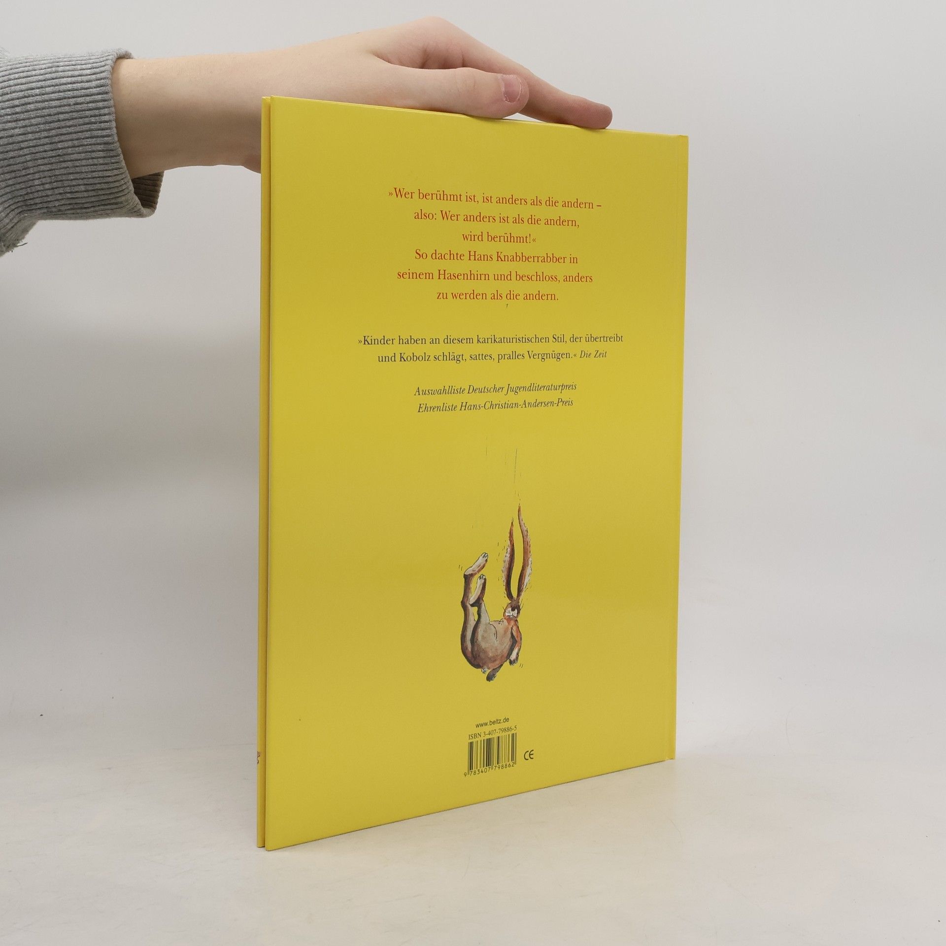 Auch ein Hase will berühmt sein! „Kinder haben an diesem karikaturistischen Stil, der übertreibt und Kobolz schlägt, sattes, pralles Vergnügen.“ Die Zeit „Wer berühmt ist, ist anders als die andern - also: Wer anders ist als die andern, wird berühmt!“ So dachte Hans Knabberrabber in seinem Hasenhirn und beschloss, anders zu werden als die anderen. Er aß Karotten im Kopfstand und schielte dabei, er schwamm im Fluss und plumpste vom Baum - er war doch einfach ein Superhase! Doch leider ist die Geschichte hier noch nicht zu Ende - ein schlauer Fuchs lag da schon auf der Lauer.