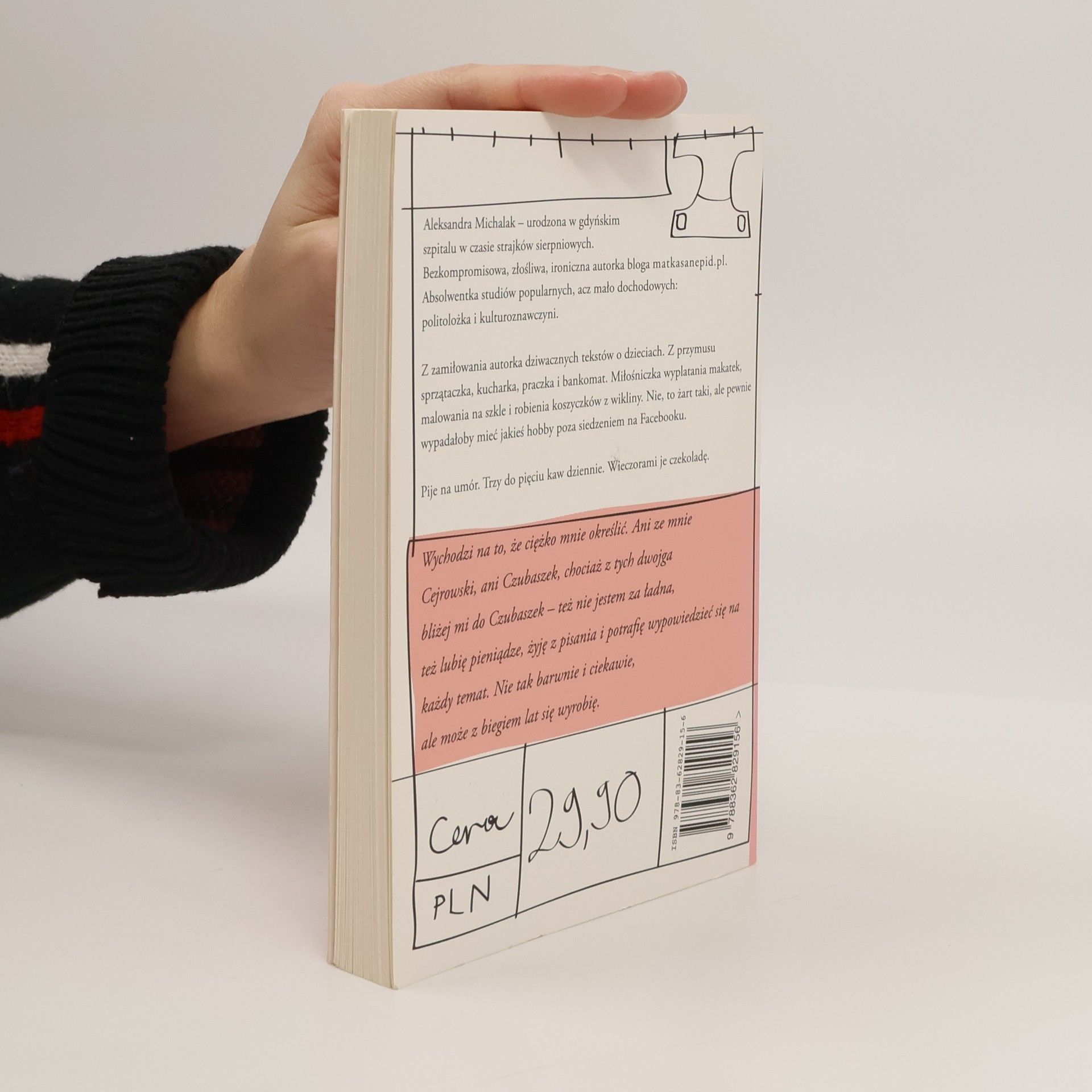 Aleksandra Michalak – urodzona w gdyńskim szpitalu w czasie strajków sierpniowych. Bezkompromisowa, złośliwa, ironiczna autorka bloga. Absolwentka studiów popularnych, acz mało dochodowych: politolożka i kulturoznawczyni. Z zamiłowania autorka dziwacznych tekstów o dzieciach. Z przymusu sprzątaczka, kucharka, praczka i bankomat. Miłośniczka wyplatania makatek, malowania na szkle i robienia koszyczków z wikliny. Nie, to żart taki, ale pewnie wypadałoby mieć jakieś hobby poza siedzeniem na Facebooku. Pije na umór. Trzy do pięciu kaw dziennie. Wieczorami je czekoladę. Na blogu 'Matka Sanepid' autorka od ponad roku dzień po dniu opisuje swoje życie, zmagania wychowawcze związane z dwiema córkami, polską rzeczywistość widzianą z perspektywy mieszkanki Wejherowa. W krótkim czasie blog zdobył niebywałą popularność, nie tylko wśród matek. Każdą notkę czyta kilka tysięcy osób, a blog trafił na czołówkę Top 10 najczęściej czytanych w swojej kategorii. „Wychodzi na to, że ciężko mnie określić. Ani ze mnie Cejrowski, ani Czubaszek, chociaż z tych dwojga bliżej mi do Czubaszek – też nie jestem za ładna, też lubię pieniądze, żyję z pisania i potrafię wypowiedzieć się na każdy temat.”