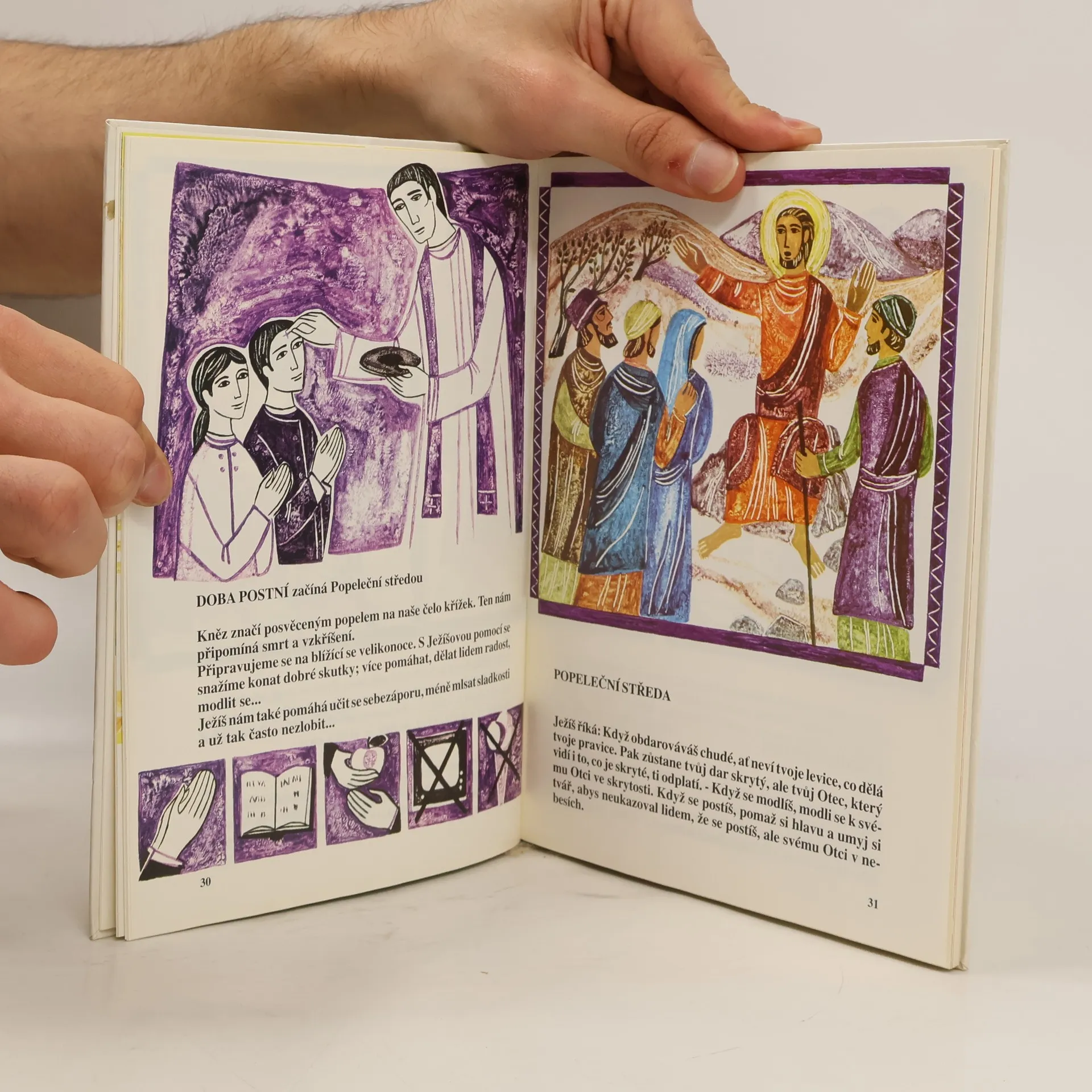 Obrázková bible k církevnímu roku pro děti, mládež, rodiče a vychovatele. Ke každé neděli a slavnosti je tu kratičce převyprávěné evangelium podle liturgického čtení v katolických kostelích (z cyklu A, B i C) a obrázek. Např. 5. neděle velikonoční, cyklus A: "Ježíš říká na rozloučenou svým apoštolům: Já jsem cesta, pravda a život. - Víme, že Ježíš říká jen to, co je pravdivé. Může a chce vést všechny lidi k dobrému a v nebeském životě jim darovat věčnou blaženost." V závěru jednoduchá mapka Svaté země pro děti.