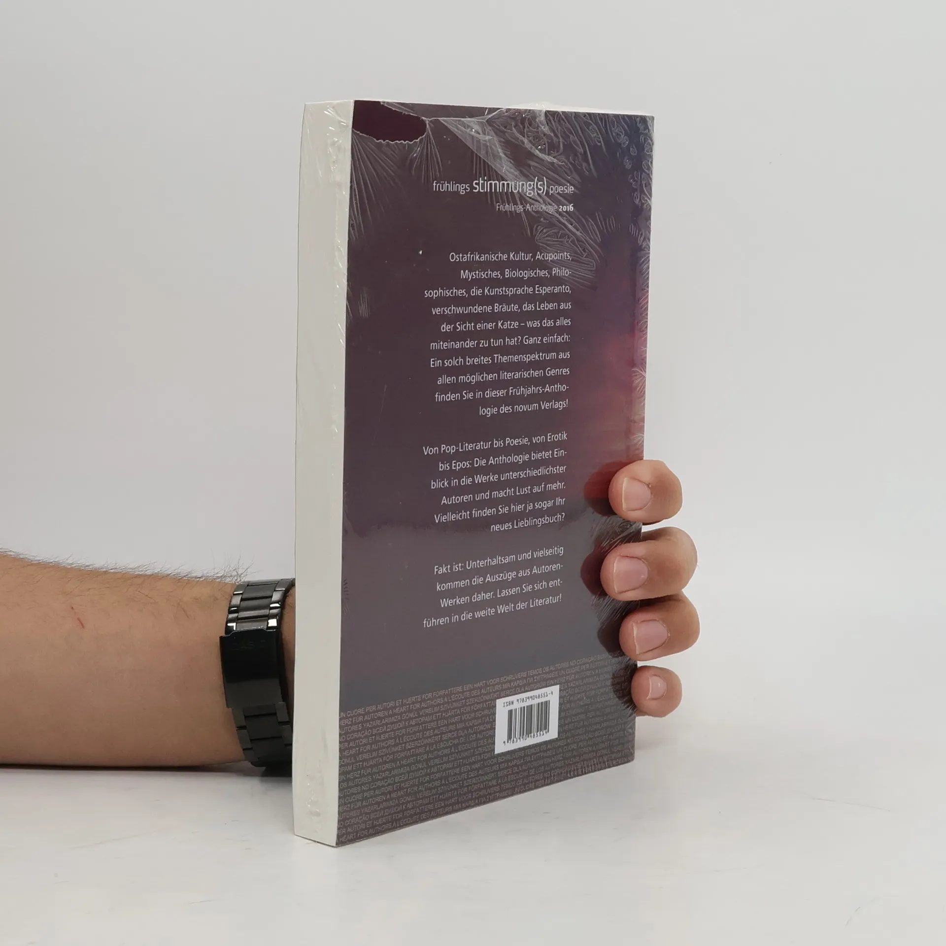 Ostafrikanische Kultur, Acupoints, Mystisches, Biologisches, Philosophisches, die Kunstsprache Esperanto, verschwundene Bräute, das Leben aus der Sicht einer Katze - was das alles miteinander zu tun hat? Ganz Ein solch breites Themenspektrum aus allen möglichen literarischen Genres finden Sie in dieser Frühjahrs-Anthologie des novum Verlags! Von Pop-Literatur bis Poesie, von Erotik bis Die Anthologie bietet Einblick in die Werke unterschiedlichster Autoren und macht Lust auf mehr. Vielleicht finden Sie hier ja sogar Ihr neues Lieblingsbuch? Fakt Unterhaltsam und vielseitig kommen die Auszüge aus Autoren-Werken daher. Lassen Sie sich entführen in die weite Welt der Literatur!