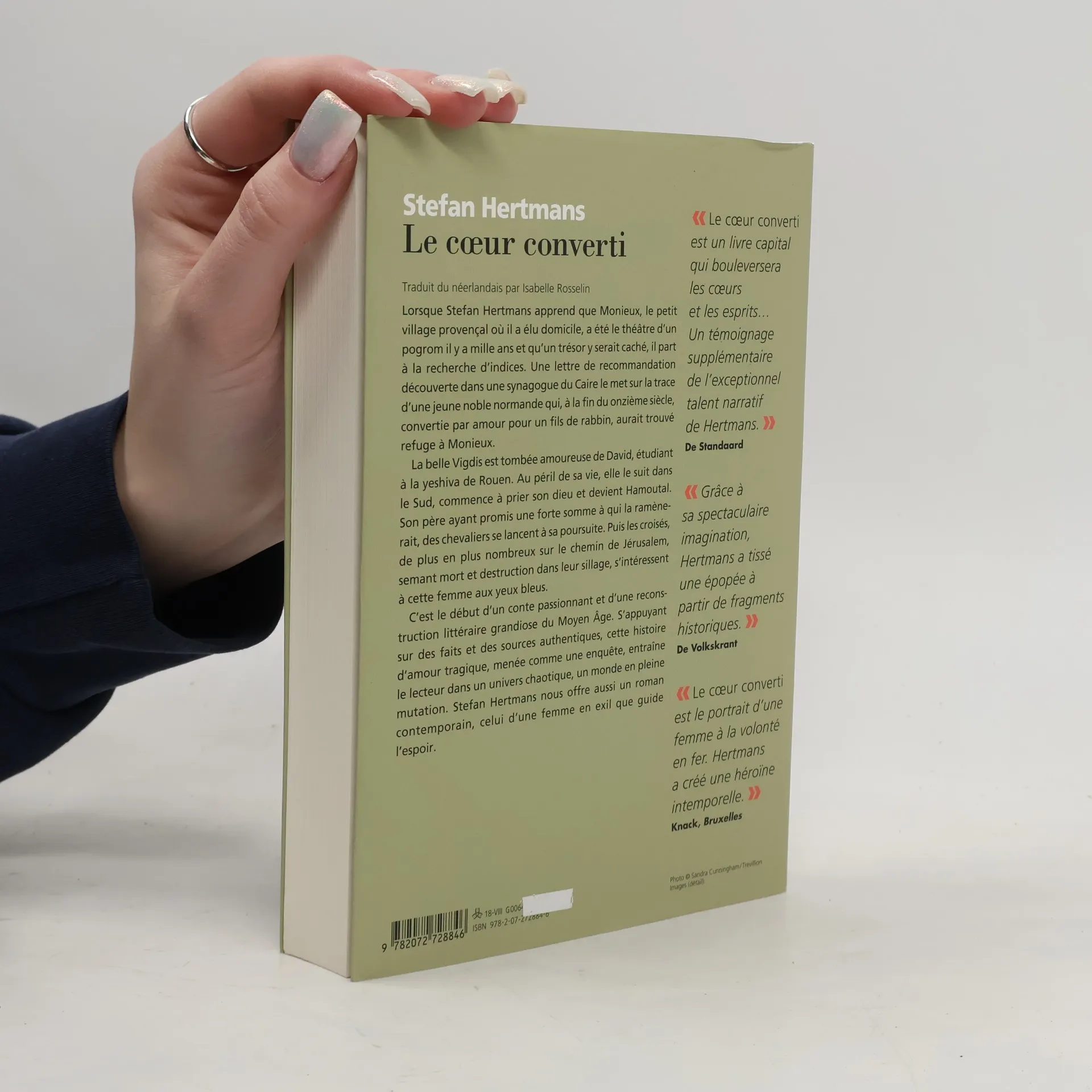 Lorsque Stefan Hertmans apprend que Monieux, le petit village provençal où il a élu domicile, a été le théâtre d'un pogrom il y a mille ans et qu'un trésor y serait caché, il part à la recherche d'indices. Une lettre de recommandation découverte dans une synagogue du Caire le met sur la trace d'une jeune noble normande qui, à la fin du onzième siècle, convertie par amour pour un fils de rabbin, aurait trouvé refuge à Monieux. La belle Vigdis est tombée amoureuse de David, étudiant à la yeshiva de Rouen. Au péril de sa vie, elle le suit dans le Sud, commence à prier son dieu et devient Hamoutal. Son père ayant promis une forte somme à qui la ramènerait, des chevaliers se lancent à sa poursuite. Puis les croisés, de plus en plus nombreux sur le chemin de Jérusalem, semant mort et destruction dans leur sillage, s'intéressent à cette femme aux yeux bleus. C'est le début d'un conte passionnant et d'une reconstruction littéraire grandiose du Moyen Age. S'appuyant sur des faits et des sources authentiques, cette histoire d'amour tragique, menée comme une enquête, entraîne le lecteur dans un univers chaotique, un monde en pleine mutation. Stefan Hertmans nous offre aussi un roman contemporain, celui d'une femme en exil que guide l'espoir.