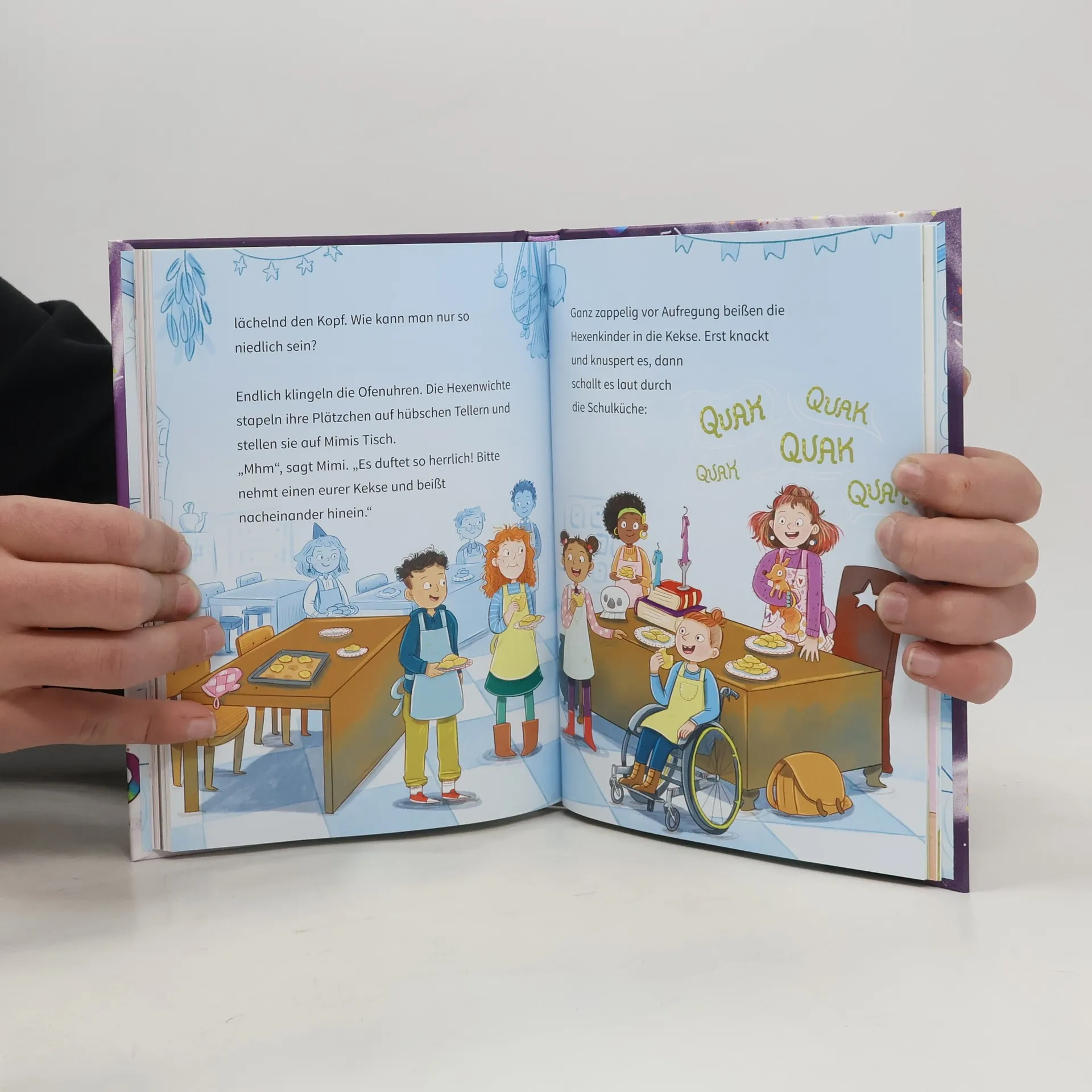<strong>Zaubersüßer Mitmach-Lesespaß in der magischen Bäckerei – die Erfolgsreihe zum Selberlesen von der beliebten Autorin Sandra Grimm.</strong> Heute dürfen die Kinder in der Hexenschule zum ersten Mal ein magisches Rezept alleine backen: Quak-Kekse, die beim Hineinbeißen schnattern wie kleine Enten. Doch das ist Mimis Hexenwichten viel zu langweilig! Heimlich stibitzen sie aus dem verbotenen Schrank ein Fläschchen mit einer Zauber-Zutat für geheimnisvolle Regenbogen-Brezeln. Aber alle, die von diesem Backwerk naschen, schweben plötzlich durch die Luft. Huch! So war das nicht geplant. Hoffentlich kennt Mimi Zuckerperle einen magischen Gegenzauber, der ihnen helfen kann. Mit <strong>lustigen Hexentests</strong> und vielen <strong>originellen Mitmach-Ideen</strong> – so fühlen sich Lesekinder selbst wie Hexenschüler*innen und werden spielerisch in die Geschichte eingebunden. <strong>Noch mehr Zauberspaß mit Mimi Zuckerperle: </strong>Die magische Törtchen-Explosion Das große Knuspertorten-Abenteuer Die fliegenden Weihnachtsplätzchen