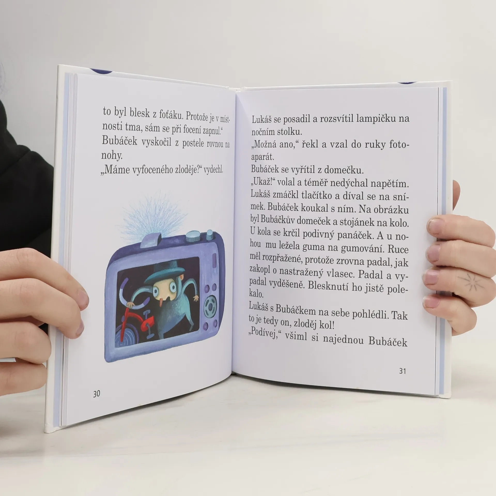 Volné pokračování knížky Bubáček! Lukáš má báječného kamaráda. Není to kluk ani holčička, dokonce ani pes či kočička. Je to hodné strašidýlko Bubáček. Však už ho možná znáte z první knížky! Tentokrát oba kamarádi řeší záhadu ztracených jízdních kol. Bubáčkovi totiž každou noc zmizí krásné kolo, na kterém přes den drandí po Lukášově pokoji. Kdo krade kola? Na zloděje se musí nastražit past! Volně navazuje na knížku Bubáček.