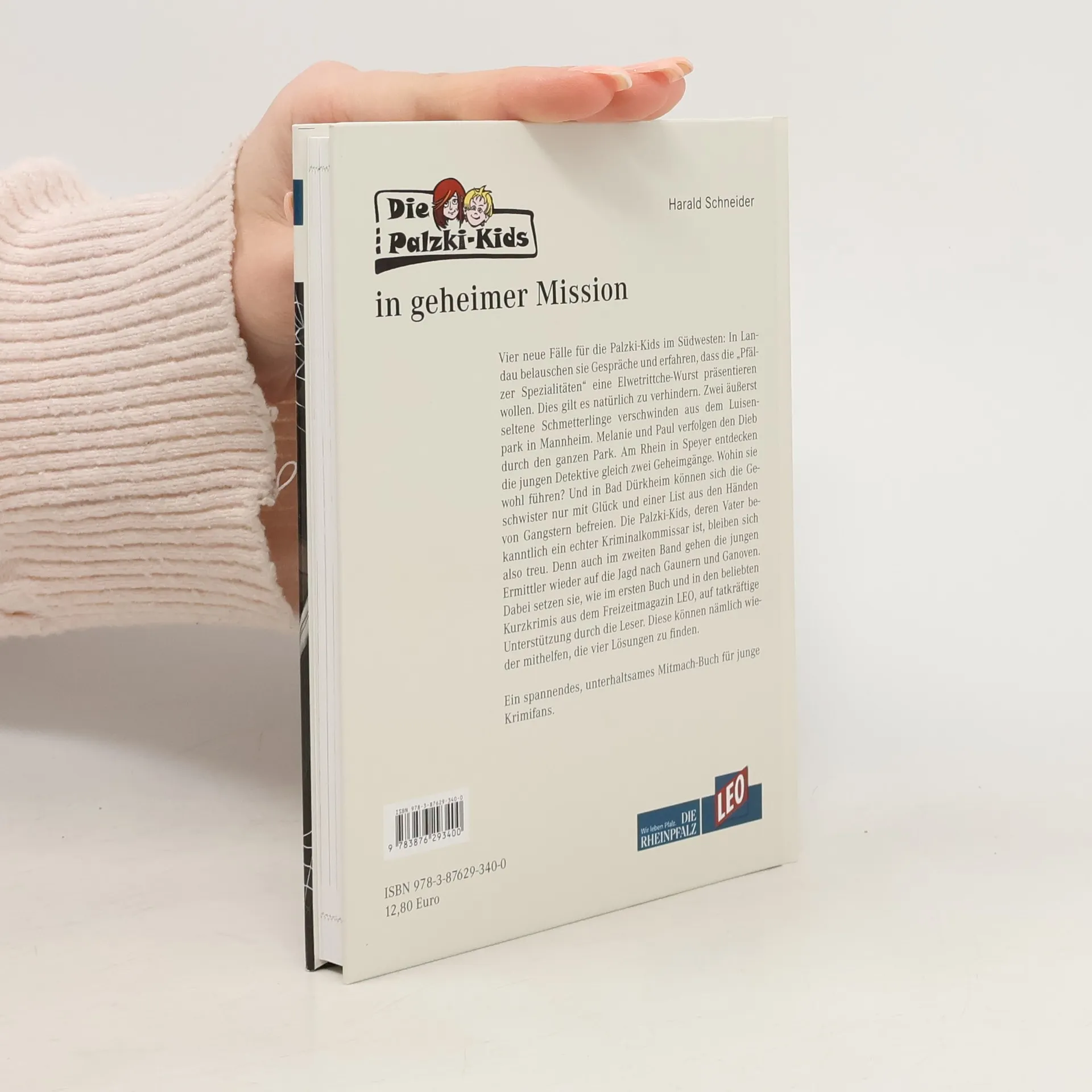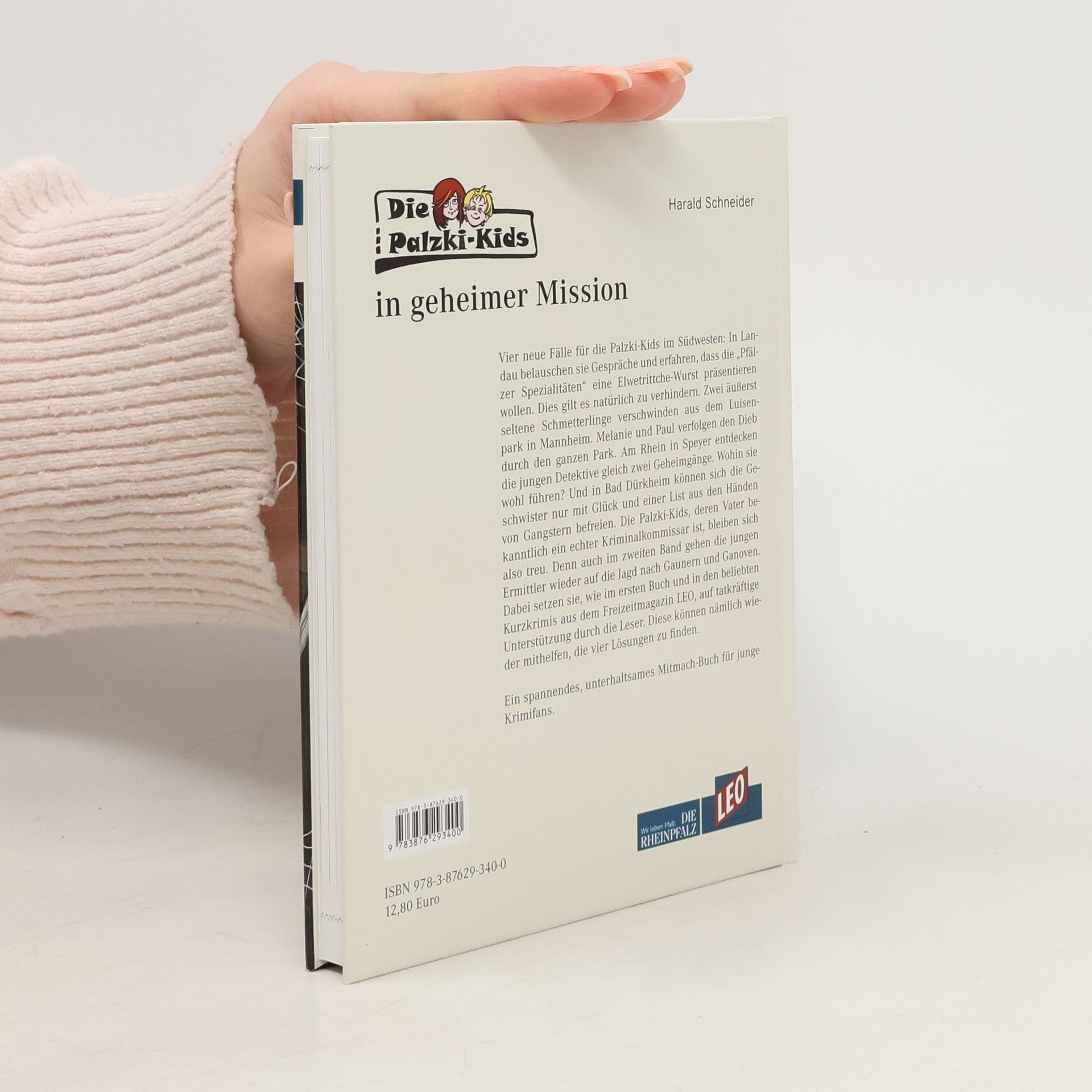 Vier neue Fälle für die Palzki-Kids im Südwesten: In Landau belauschen sie Gespräche und erfahren, dass die „Pfälzer Spezialitäten“ eine Elwetrittche-Wurst präsentieren wollen. Dies gilt es natürlich zu verhindern. Zwei äußerst seltene Schmetterlinge verschwinden aus dem Luisenpark in Mannheim. Melanie und Paul verfolgen den Dieb durch den ganzen Park. Am Rhein in Speyer entdecken die jungen Detektive gleich zwei Geheimgänge. Wohin sie wohl führen? Und in Bad Dürkheim können sich die Geschwister nur mit Glück und einer List aus den Händen von Gangstern befreien. Die Palzki-Kids, deren Vater bekanntlich ein echter Kriminalkommissar ist, bleiben sich also treu. Denn auch im zweiten Band gehen die jungen Ermittler wieder auf die Jagd nach Gaunern und Ganoven. Dabei setzen sie, wie im ersten Buch und in den beliebten Kurzkrimis aus dem Freizeitmagazin LEO, auf tatkräftige Unterstützung durch die Leser. Diese können nämlich wieder mithelfen, die vier Lösungen zu finden. Ein spannendes, unterhaltsames Mitmach-Buch für junge Krimifans.