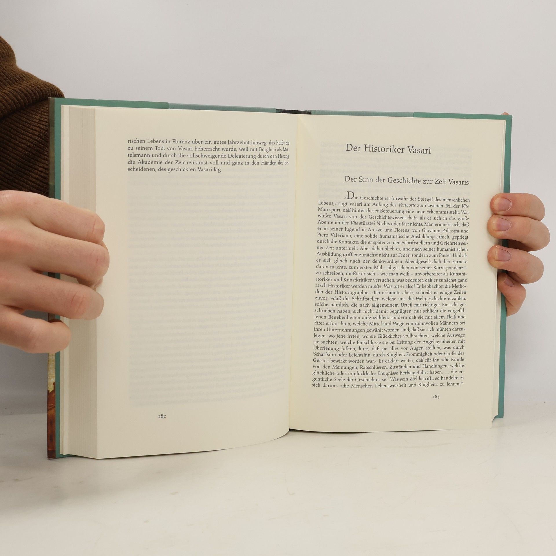 Vasari non ha mai dominato la sua epoca. L'ha attraversata in veste di testimone perspicace e artista appassionato, è anche intervenuto su di essa, ma non l'ha mai controllata. E' forse vero l'inverso: egli fu un prodotto della sua epoca. La sua rapidità, la sua ansia di azione erano la manifestazione dell'inquietudine tipica di quegli anni. La compilazione delle Vite, l'ebbrezza degli affreschi senza fine, la frenesia che lo portava a lavorare sempre di più e sempre più in fretta, rappresentano manifestazioni nevrotiche di questa ossessione dei domani vuoti. Cosimo I allontanò la sua angoscia con le conquiste politiche e militari e con il suo potere autoritario. Tramite la penna, il pennello o la squadra, Vasari edificò la memoria del suo tempo; egli salvò non soltanto il ricordo di se stesso ma anche di coloro che lo avevano preceduto.