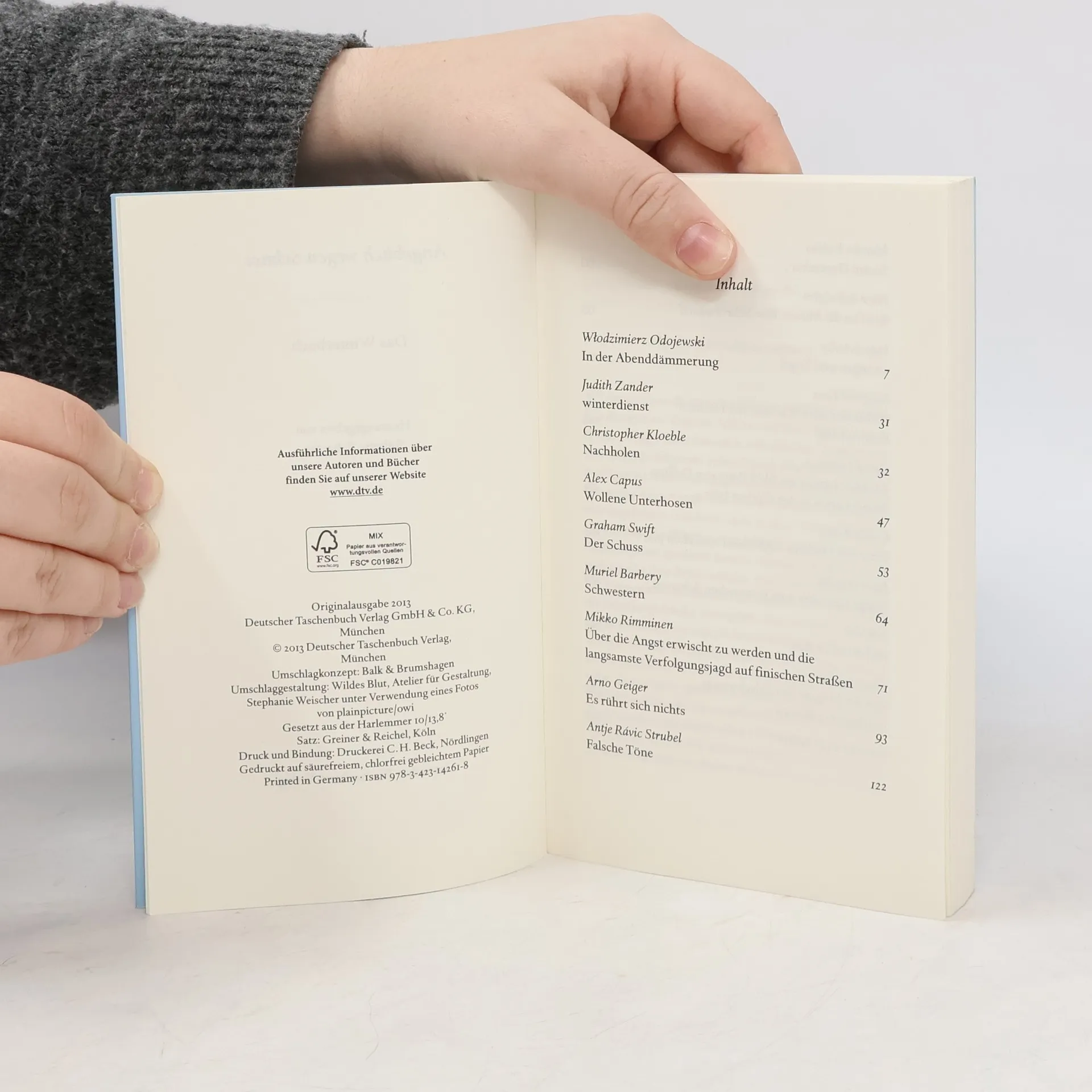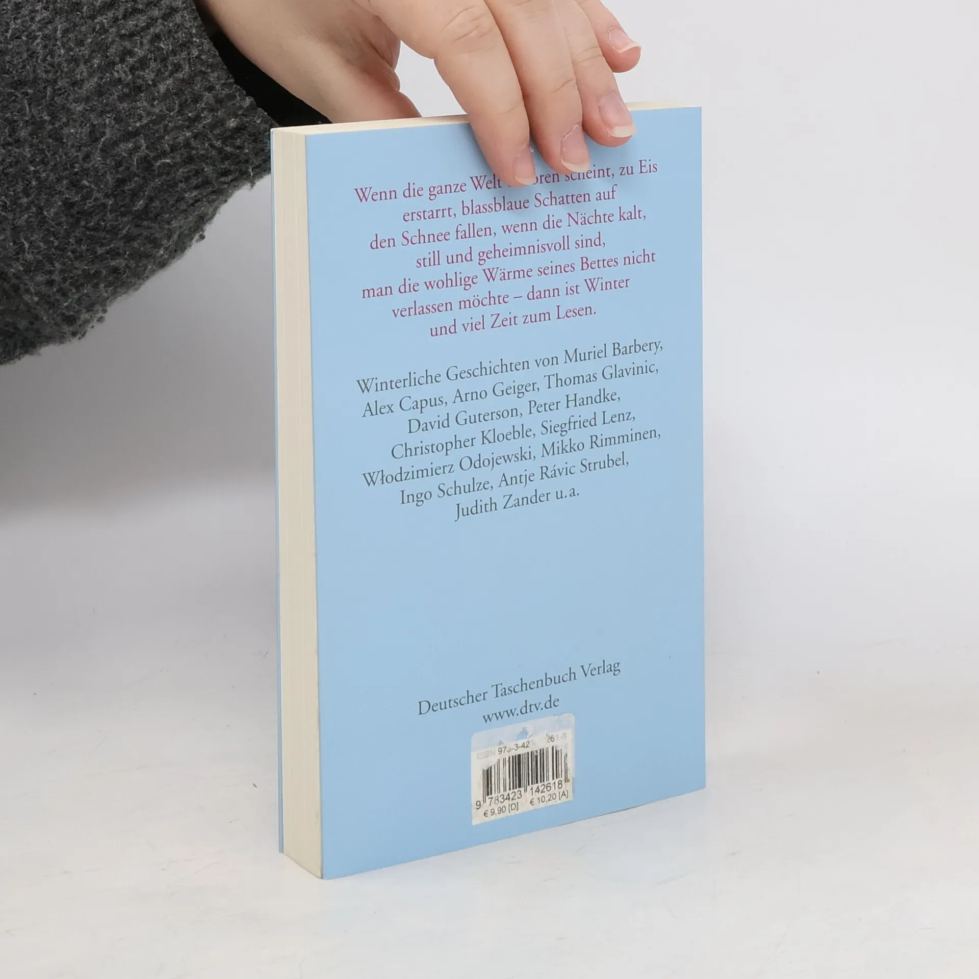 Von der Schmach, wollene Unterhosen vor der Turnstunde in der Garderobe herzeigen zu müssen, von Lebensmüden in schlafl osen Nächten, von der vermutlich langsamsten Verfolgungsjagd in der modernen Literatur, vom Glück, im Märchen-Grimm zu lesen, von dem lautlos kommenden Neujahr, vom japanischen Schneien, von roten Bändern, die das Unglück fernhalten sollen, von der Eleganz des Skifahrens und der Langsamkeit des Stürzens – Winterliches von Muriel Barbery, Alex Capus, Arno Geiger, Thomas Glavinic, David Guterson, Christopher Kloeble, Siegfried Lenz, Wlodzimierz Odojewski, Mikko Rimminen, Ingo Schulze, Graham Swift, Judith Zander u.a.