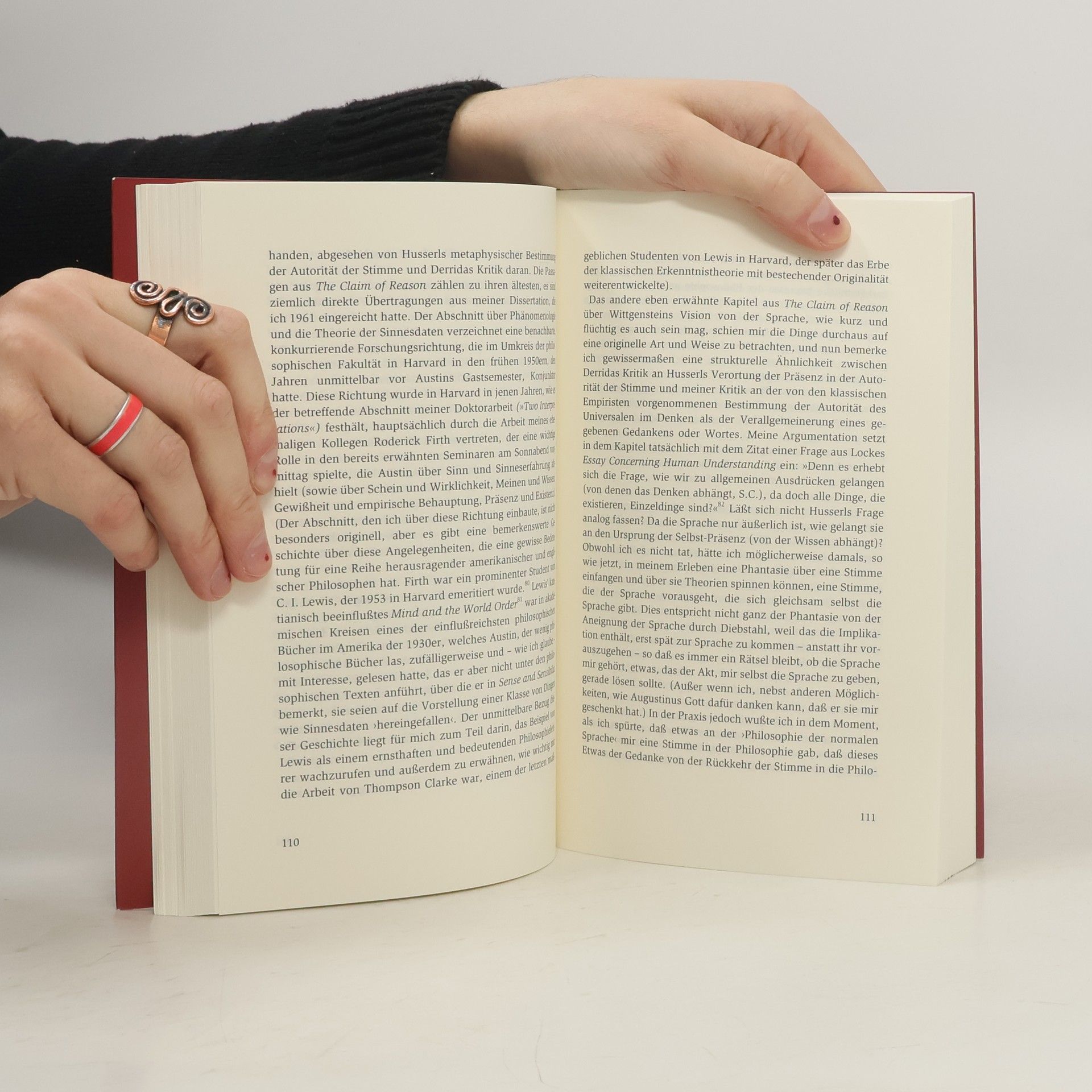 In den in diesem Band versammelten drei Essays zieht Stanley Cavell, einer der interessantesten und vielseitigsten Denker der Gegenwart, die Bilanz seines bisherigen Lebens und Denkens, angefangen von seiner Auseinandersetzung mit der Philosophie der normalen Sprache, dem Einfluss Emersons und Thoreaus auf das Denken in Nordamerika, der Psychoanalyse, dem Film, der Oper bis zur Analyse des Gewöhnlichen und des Skeptizismus. Den Leitfaden der drei Essays bildet die Stimme. Im ersten schildert Cavell, wie er seine eigene Stimme in der Philosophie gefunden hat: Er beschreibt seine Jugend im Milieu jüdischer Einwanderer im Kalifornien der 1930er und 40er Jahre, seine Zeit als Musiker in einer Band, die musikalischen Studien bei Ernest Bloch und schließlich seine Hinwendung zur Philosophie in der Auseinandersetzung mit Ludwig Wittgenstein und im Zusammenhang der persönlichen Begegnung mit J. L. Austin. Im zweiten Kapitel analysiert er die Rolle der Stimme im alten Streit über die Autorität von Metaphysik und Epistemologie anhand der Kontroverse zwischen Derrida und Austin. Im letzten Kapitel untersucht er die Stimme der Frau in der Oper und zeigt mögliche Gefahren auf, die das Erheben der Stimme implizieren kann, woraus er auf eine gender-spezifische Wendung der Skeptizismusproblematik schließt.