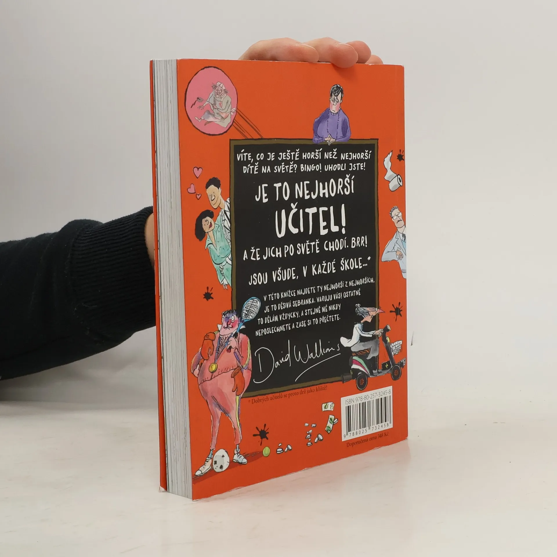 Miliony dětských čtenářů v mnoha zemích, kteří se bavili nad Walliamsovými knihami o nejhorších dětech na světě, se můžou těšit na povedenou sbírku děsivých dospělých, ba co hůř, těch nejděsivějších dospělých vůbec: učitelů. Myslíte si, že vaši učitelé jsou příšerní? Jen počkejte, až poznáte tuhle sebranku! Desítka nádherně odporných pedagogů vás zaručeně donutí dát se na bezhlavý útěk ze školních vrat. Jeden z učitelů trpí nevýslovným strachem, no považte, z dětí! Jiná učitelka se věčně vzteká a nechá po škole každého, kdo se jí nestačí vyhnout, další učí přírodní vědy a je napůl člověk, napůl odporný smrdutý netvor... a to ještě zdaleka není všechno!