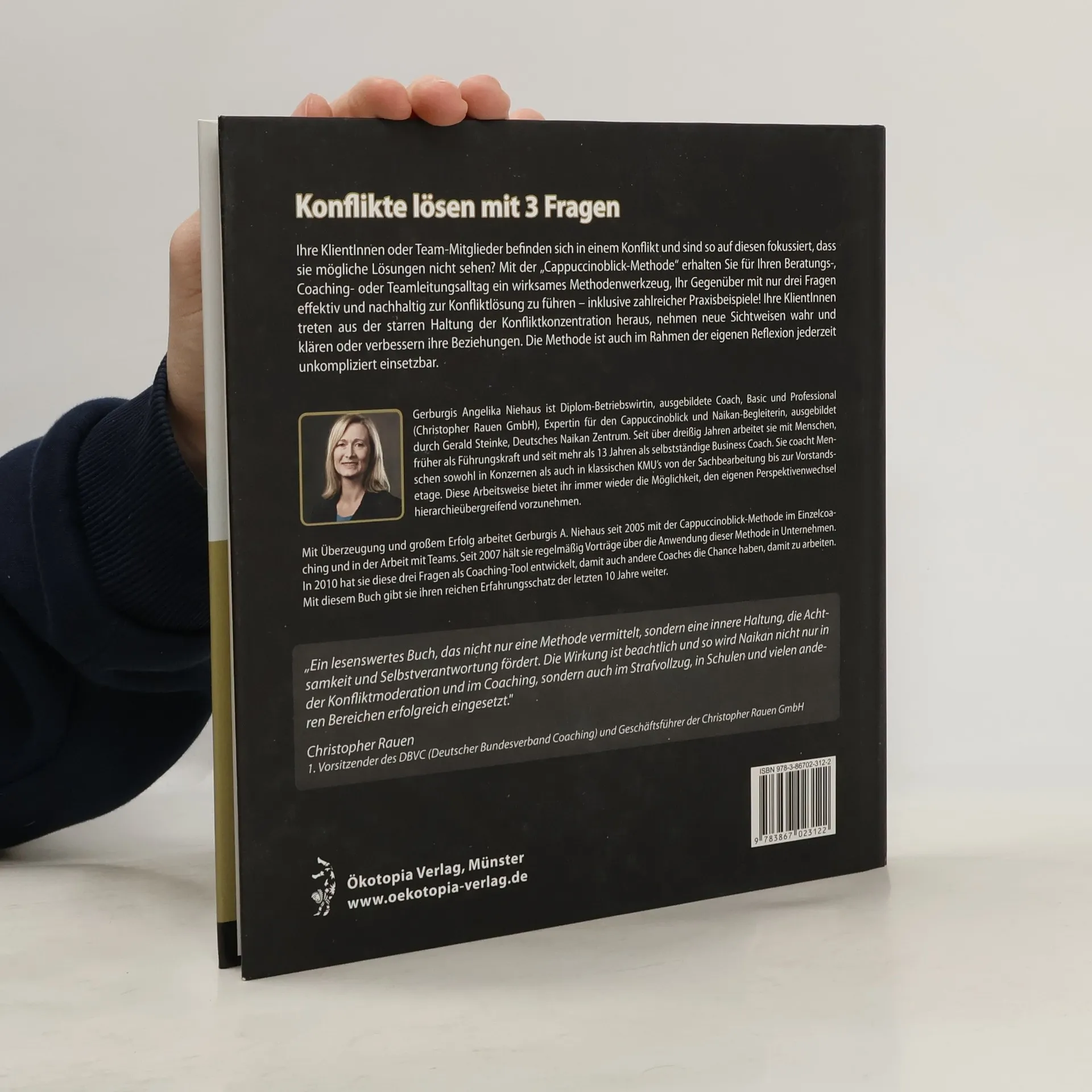 Neue Impulse im Konfliktmanagement Die „Cappuccinoblick-Methode“ zeigt schnell, wirksam und nachhaltig, wie Coaches und BeraterInnen ihre KlientInnen und Teams bei Konflikten effektiv unterstützen können. Mit jeder der drei Fragen wird das Blickfeld erweitert und eine andere Perspektive eingenommen - so können neue Sichtweisen wahrgenommen und Beziehungen geklärt bzw. verbessert werden. Vielfältige Praxisbeispiele ermöglichen eine schnelle Aneignung und die zielgerichtete Umsetzung der Methodik. Das Ergebnis ist das gute Gefühl einer überzeugenden Konfliktlösung - ob während des Beratungsprozesses oder im Rahmen der eigenen Reflexion.