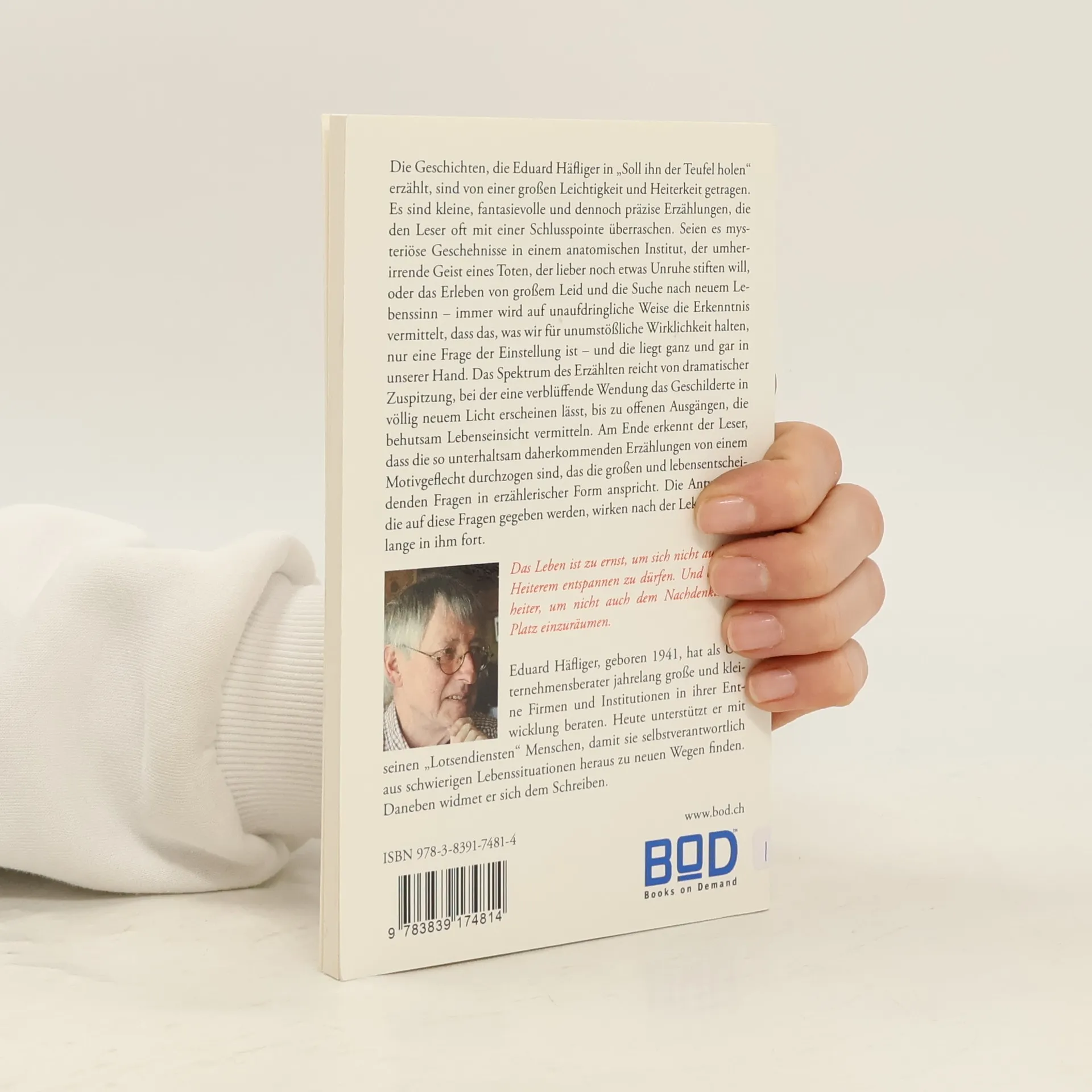 Die Geschichten, die Eduard Häfliger in "Soll ihn der Teufel holen" erzählt, sind von einer großen Leichtigkeit und Heiterkeit getragen. Es sind kleine, fantasievolle und dennoch präzise Erzählungen, die den Leser oft mit einer Schlusspointe überraschen. Seien es mysteriöse Geschehnisse in einem anatomischen Institut, der umherirrende Geist eines Toten, der lieber noch etwas Unruhe stiften will, oder das Erleben von großem Leid und die Suche nach neuem Lebenssinn - immer wird auf unaufdringliche Weise die Erkenntnis vermittelt, dass das, was wir für unumstößliche Wirklichkeit halten, nur eine Frage der Einstellung ist - und die liegt ganz und gar in unserer Hand. Das Spektrum des Erzählten reicht von dramatischer Zuspitzung, bei der eine verblüffende Wendung das Geschilderte in völlig neuem Licht erscheinen lässt, bis zu offenen Ausgängen, die behutsam Lebenseinsicht vermitteln. Am Ende erkennt der Leser, dass die so unterhaltsam daherkommenden Erzählungen von einem Motivgeflecht durchzogen sind, das die großen und lebensentscheidenden Fragen in erzählerischer Form anspricht. Die Antworten, die auf diese Fragen gegeben werden, wirken nach der Lektüre noch lange in ihm fort. "Das Leben ist zu ernst, um sich nicht auch mit Heiterem entspannen zu dürfen. Und es ist zu heiter, um nicht auch dem Nachdenklichem Platz einzuräumen."