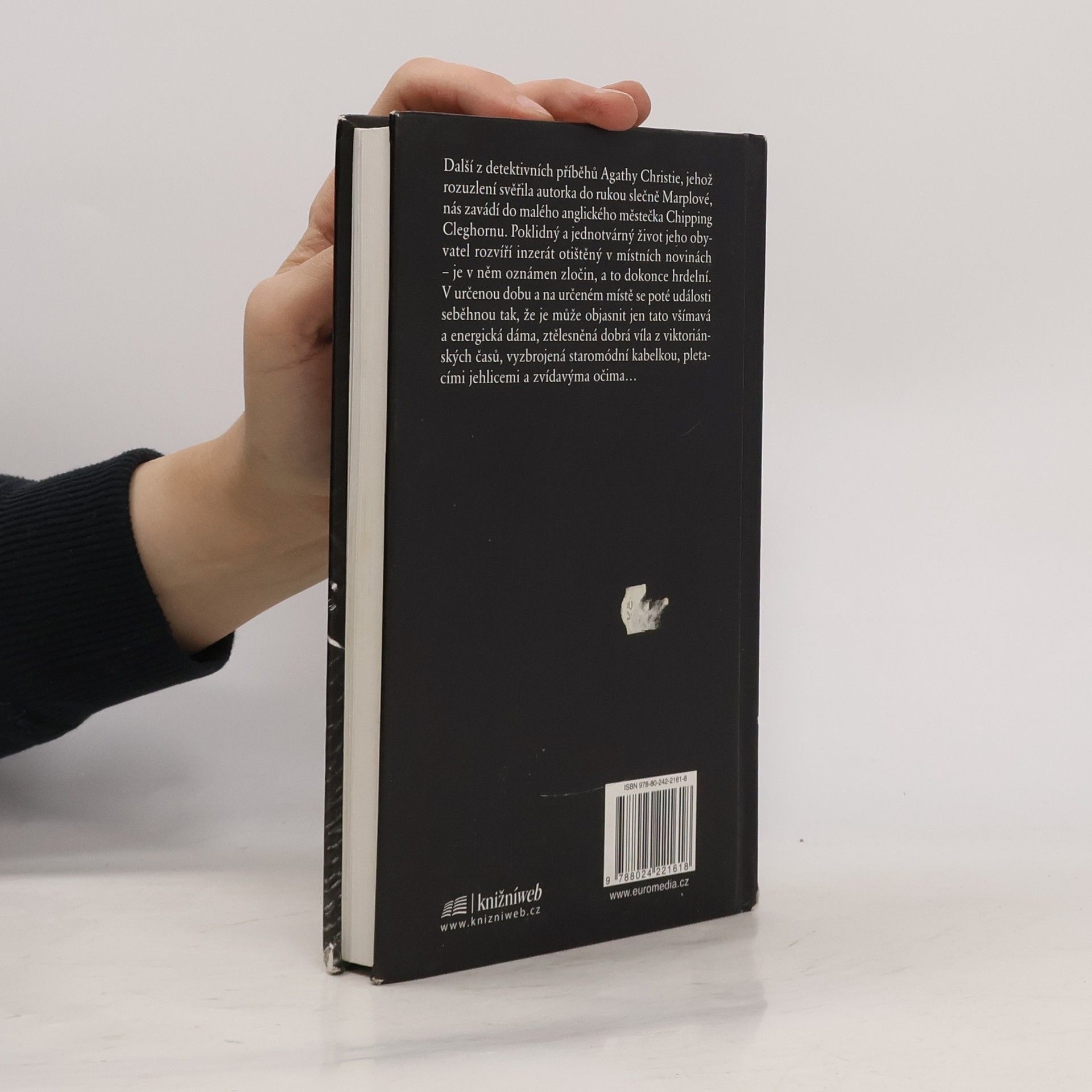 Další z detektivních příběhů Agathy Christie, jehož rozuzlení svěřila autorka do rukou slečně Marplové, nás zavádí do malého anglické městečka Chipping Cleghorn. Poklidný a jednotvárný život jeho obyvatel rozvíří inzerát otištěný v místních novinách – je v něm oznámen zločin, a to dokonce hrdelní. V určenou dobu a na určeném místě se poté události seběhnou tak, že je může objasnit jen tato všímavá a energická dáma, ztělesněná dobrá víla z viktoriánských časů, vyzbrojená staromódní kabelkou, pletacími jehlicemi a zvídavýma očima...