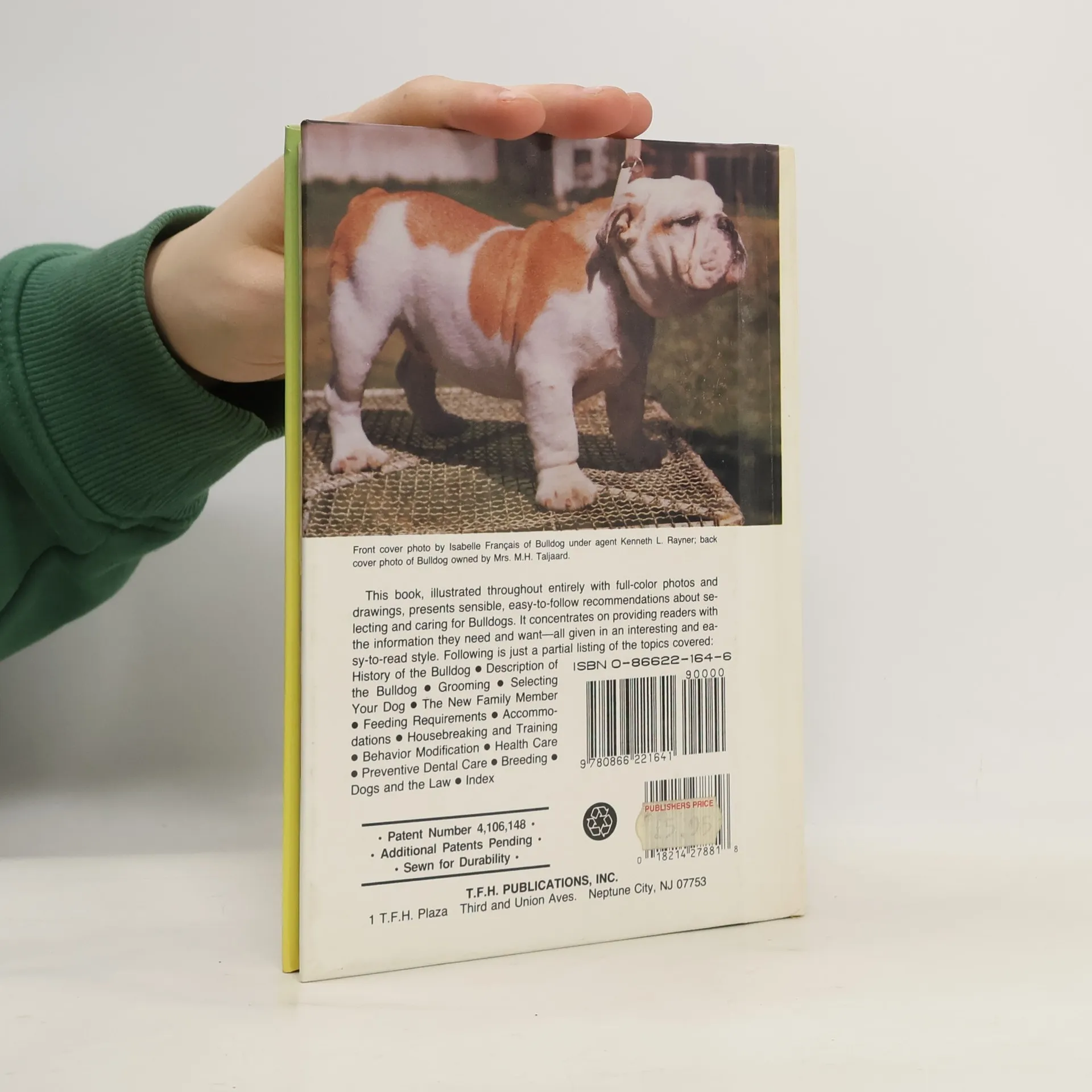 Colorful photographic illustrations, drawings, and text present recommendations on selecting, breeding, and caring for Bulldogs.