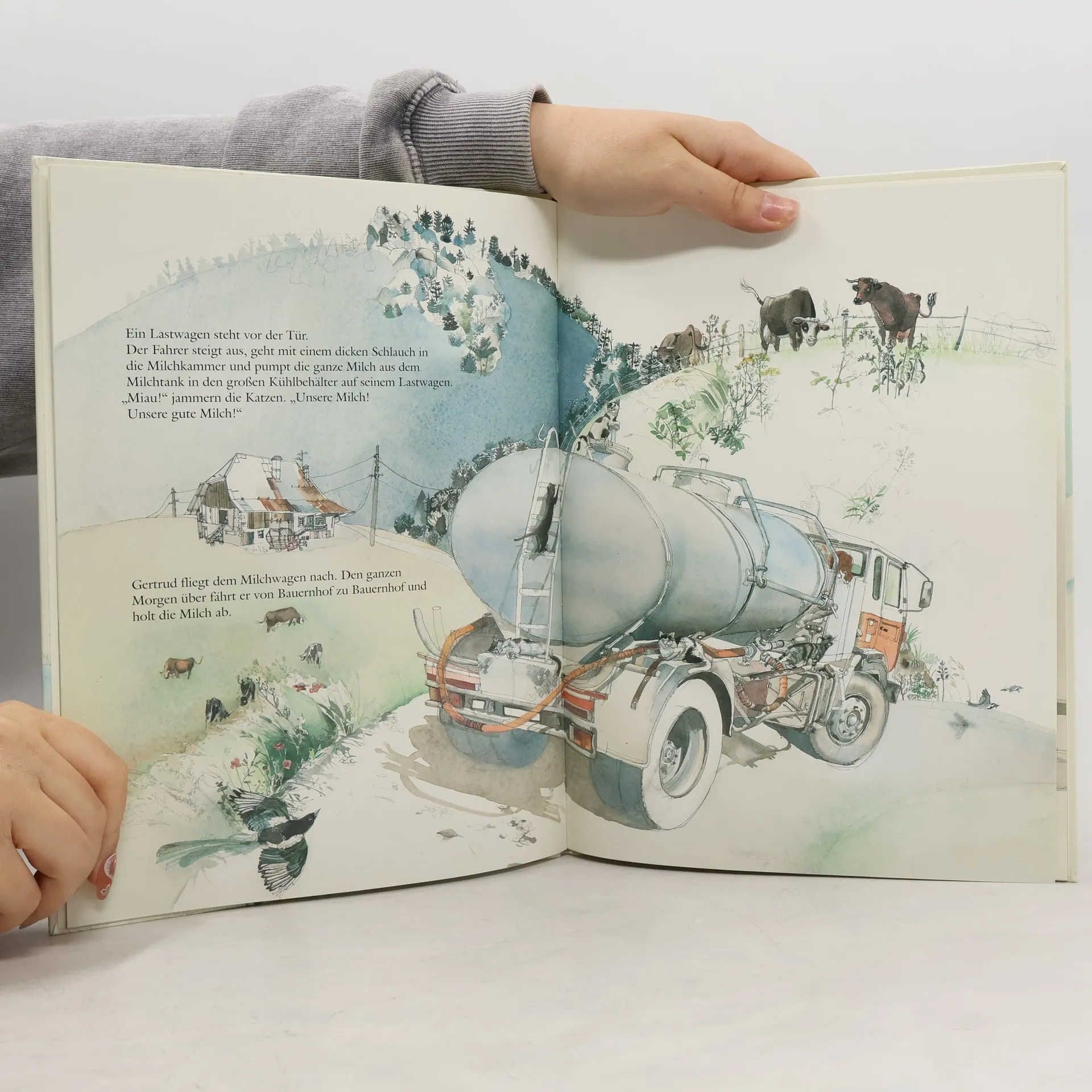 Die Kuh Rosalie möchte gern wissen, was mit ihrer Milch geschieht und schickt die Elster auf Kundschaft.