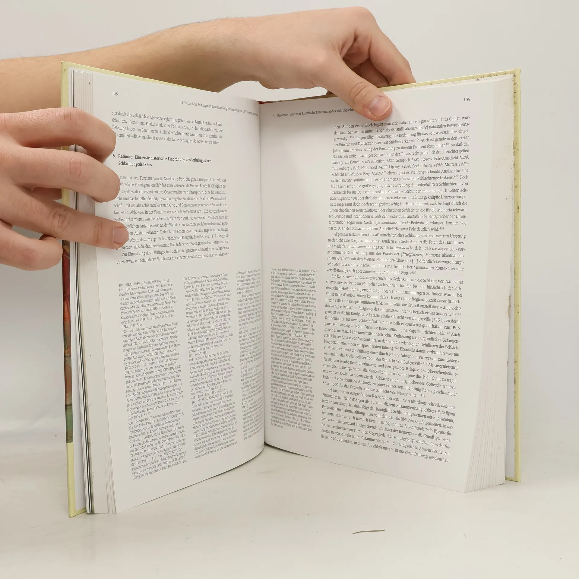 Das Buch leistet eine Neubewertung der Kunst am Hofe der Herzöge von Lothringen zwischen 1477 und 1525, einer Phase, in der das Herzogtum den Höhepunkt seiner politischen Bedeutung erreichte. Ausgangspunkt dafür ist die Schlacht von Nancy, in der 1477 der bis dahin unbedeutende lothringische Herzog René II. unerwartet Karl den Kühnen, den mächtigen Herzog von Burgund, vernichtend schlug. Mit diesem Sieg und dem gleichzeitigen Tod Karls griff René unverhofft in europäische Großmachtpolitik ein. Der Versuch, diese neue, herausgehobene Stellung seines Hofes zu festigen, manifestiert sich in einer reichen, alle Gattungen umfassenden Stiftungstätigkeit. Ihr Hauptthema ist dabei die Schlacht selbst. Neben der Mehrung des Ruhmes des Herzogs dient ihre vielfältige Inszenierung der gezielten Ausbildung eines bis dahin nicht existierenden lothringischen ›(Proto-) Nationalbewusstseins‹: So werden eine Fülle von identitätsstiftenden Orten, Gnadenbildern und Symbolen etabliert, die bis heute für Lothringen ihre Bedeutung behalten haben. Dieser Komplex ist Ausgangspunkt einer weitergespannten Analyse der lothringischen Hofkultur, ihrer Paradigmen und Konstituenten, für die insbesondere die Internationalität jener Grenzregion prägend war.