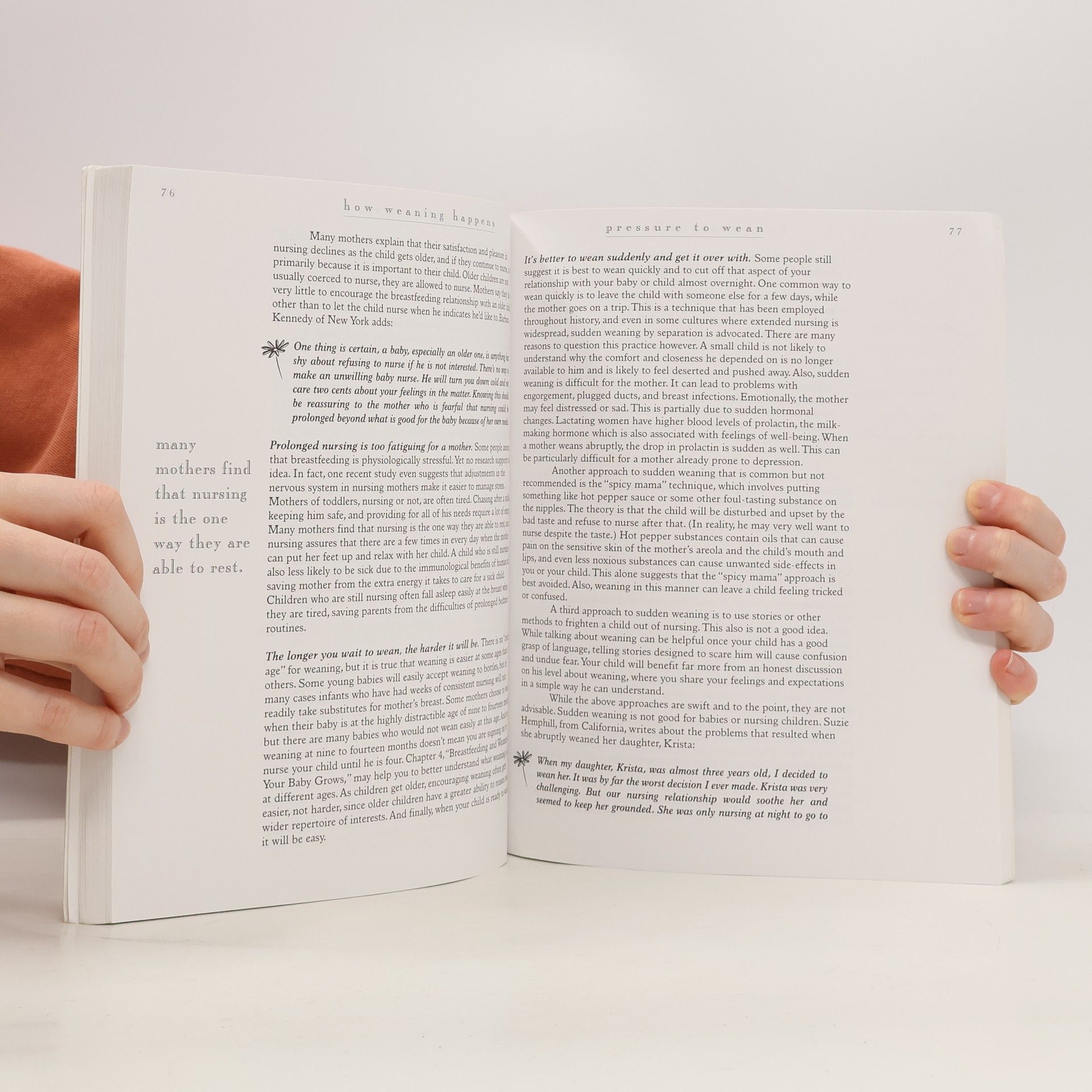 * This is a new copy. When counseling breastfeeding families who ask How Weaning Happens, author Diane Bengson says, "Gradually, with love." She answers the many questions she's seen hundreds of families bring up through her years as a La Leche League Leader and wrapped her own as well as their personal experiences into her book How Weaning Happens. She covers social and cultural differences among the breastfeeding families, pressures to wean, natural weaning and various other reasons to wean. She also writes about the physical and emotional changes of mother and child in a nursing relationship. Weaning is the first complete book on the topic from LLLI, though the organization has a number of shorter publications on the subject.