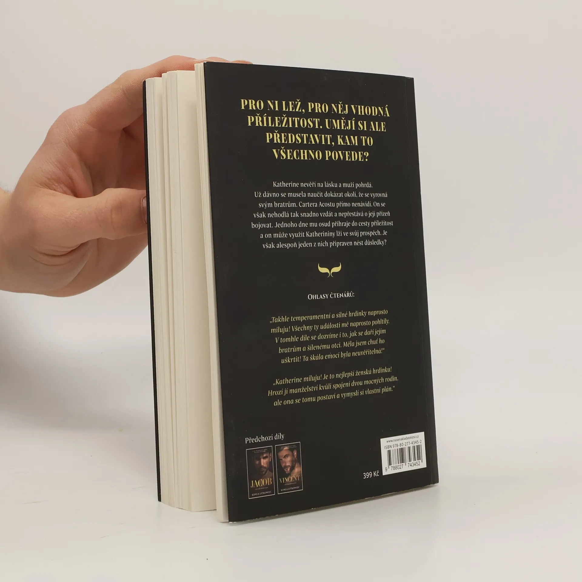 Katherine není jen tak obyčejná žena. Dcera Jordana Blakemorea si musela od útlého dětství umět poradit a dokázat svému okolí, že se ve všem vyrovná svým bratrům. Proto je vzpurná, odvážná a bojovná. Nevěří na lásku a s muži zachází pohrdavě. Carter Acosta, kterého tak nenávidí, se nemíní jen tak snadno vzdát, přestože je boj o její přízeň předem odsouzen k nezdaru. Až jednoho dne je mu osud nakloněn. Katherine, přitlačená ke zdi, zalže a muž se rozhodne její situaci využít, protože ví, že nemá co ztratit. Ani jeden z nich však není připravený nést následky této lži. Je možné, aby se nenávist změnila v lásku? A může žena jako Katherine doufat ve šťastný konec?