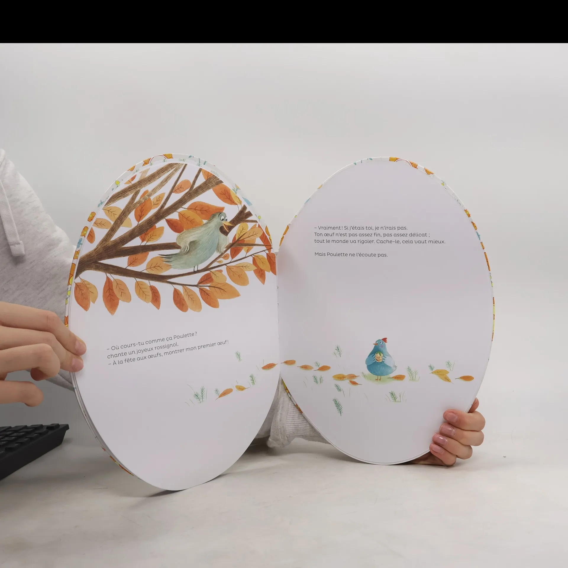 Poulette vient de pondre son tout premier oeuf ! Vite, vite, il ne faut pas qu'elle soit en retard à la fête aux oeufs. Car aujourd'hui, comme à chaque début de printemps, la reine des poules doit désigner le plus bel oeuf de l'année...