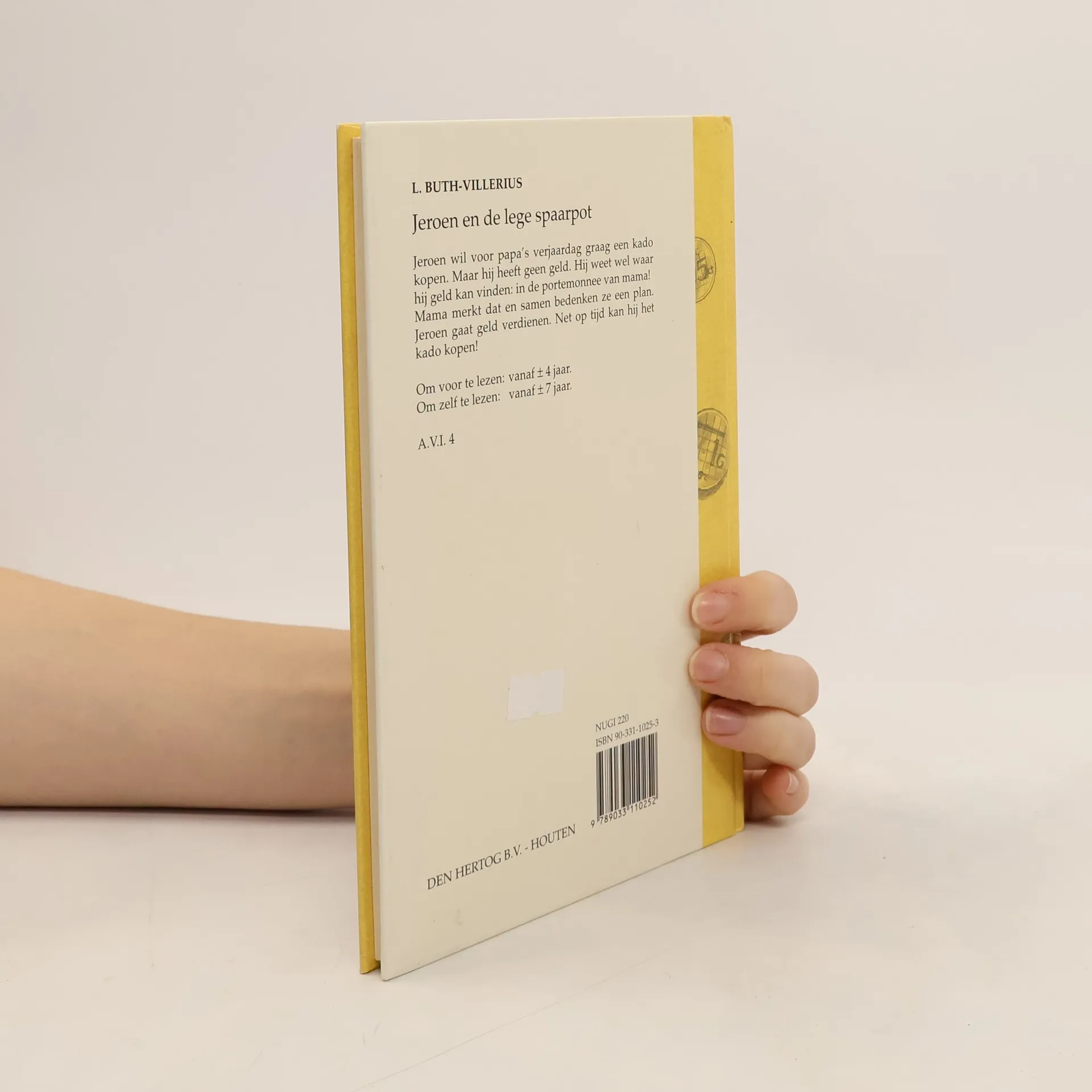 Voor de verjaardag van papa wil Jeroen iets kopen. Maar zijn spaarpot is leeg. AVI-M4. Vanaf ca. 7 jaar.