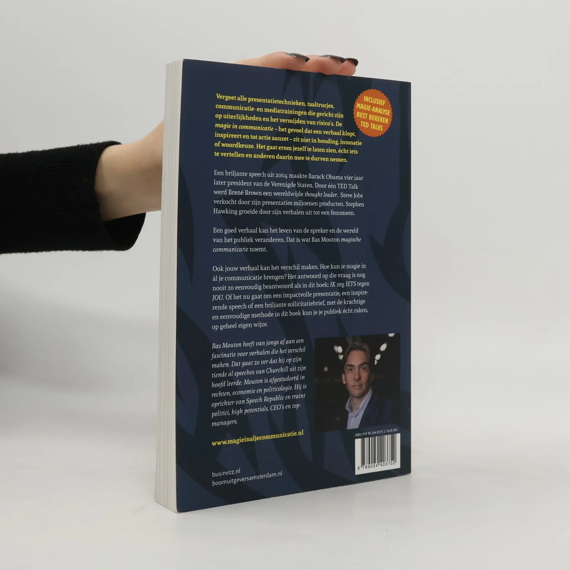Vergeet alle technieken en trainingen die zich richten op uiterlijkheden en risicomijding. De ware magie van communicatie ligt in authentiek jezelf zijn en een oprecht verhaal vertellen dat anderen inspireert en in beweging zet. Een krachtige speech kan levens veranderen, zoals de toespraak van Barack Obama in 2004 die hem vier jaar later tot president maakte, of Brené Brown's TED talk die haar tot een wereldwijde thought leader maakte. Steve Jobs en Stephen Hawking gebruikten hun verhalen om miljoenen te beïnvloeden. Een goed verhaal kan zowel de spreker als het publiek transformeren. Dit boek biedt een eenvoudige methode om magie in je communicatie te brengen, of je nu een impactvolle presentatie, inspirerende speech of overtuigende sollicitatiebrief wilt geven. Bas Mouton, met een levenslange fascinatie voor verhalen, deelt zijn inzichten. Op tienjarige leeftijd leerde hij al speeches van Churchill uit zijn hoofd. Met zijn achtergrond in rechten, economie en politicologie, en als oprichter van Speech Republic, traint hij politici, high potentials, CEO's en topmanagers. Ontdek hoe jouw verhaal het verschil kan maken.