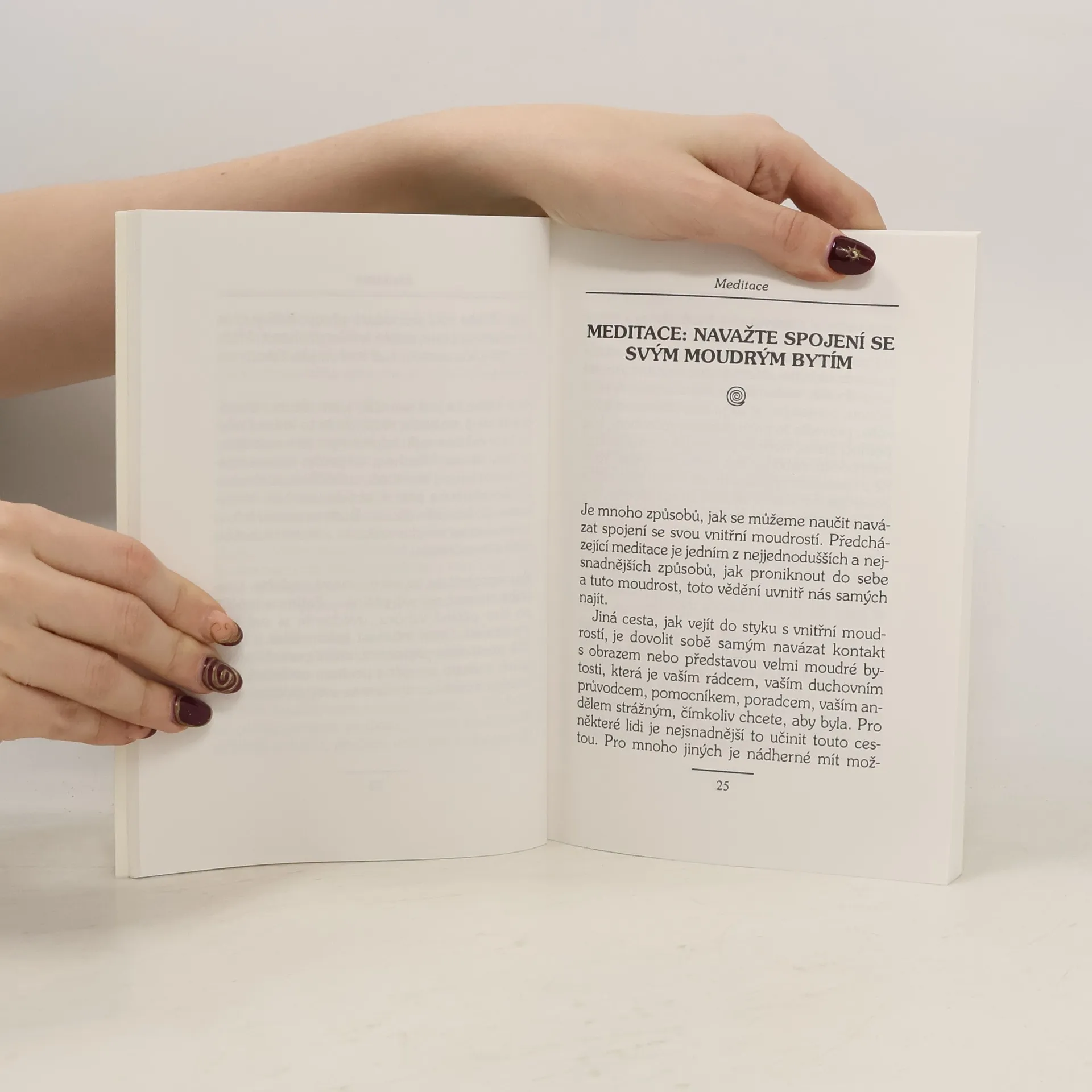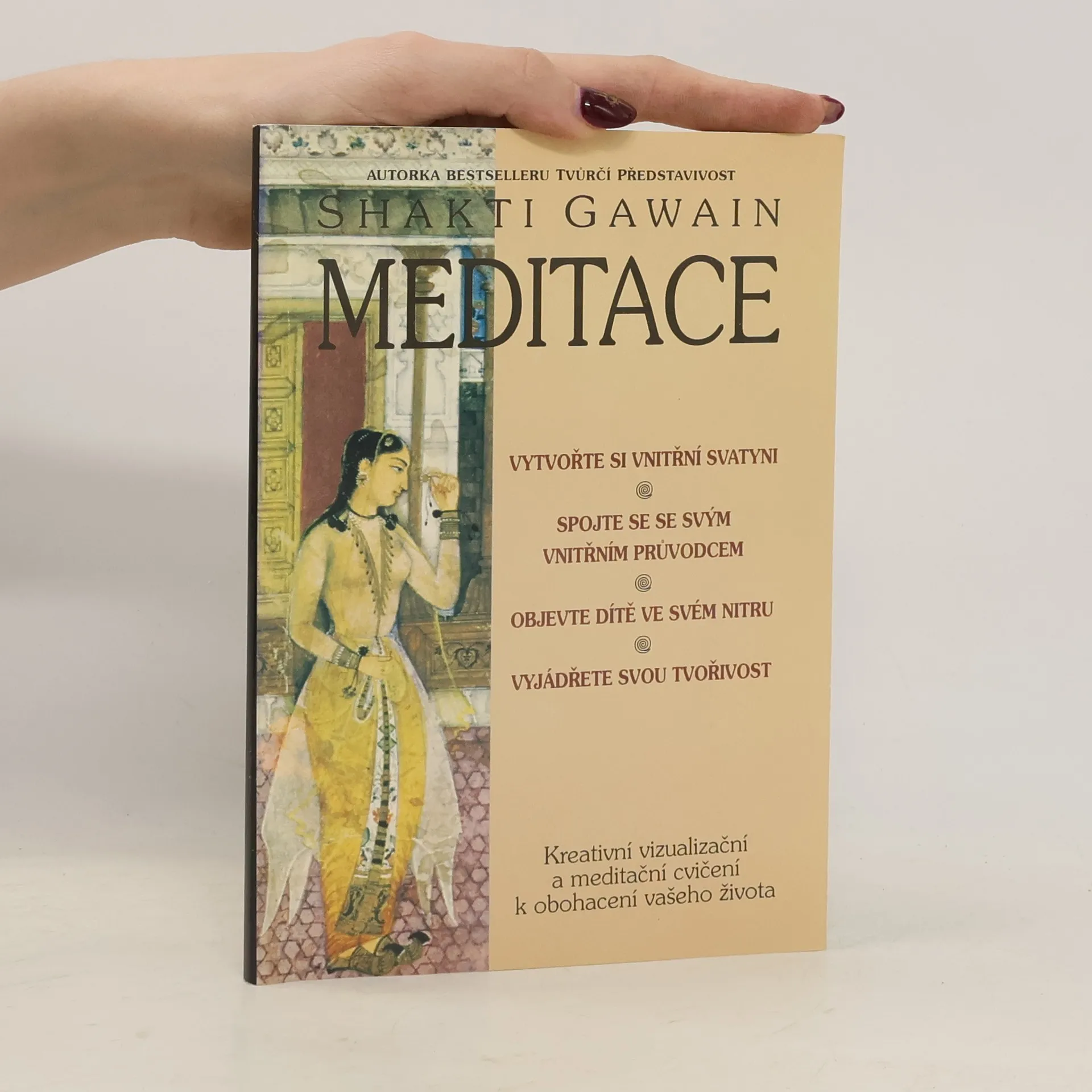 SHAKTI GAWAIN, autorka světového bestselleru Creative Visualization (Tvůrčí představivost) a dalších úspěšných titulů z oblasti New Age, např. Living in the Light (Život ve světle) a Return to the Garden (Návrat do zahradí; ), oslovila miliony Čtenářů svou vřelostí a ryzí láskou. Tato kniha obsahuje nejznámější meditace a vizualizační techniky z nejnovějších audiokazet od Shakti Gawain, nazvaných Meditace se Shakti Gawain. Každému cvičení předchází úvod a diskuse, poté Shakti provádí čtenáře vlastní meditací. Během meditací se Shakti Gawain objevíte svou VNITŘNÍ SVATYNI, klidné, povznášející místo ve svém nitru. Spojíte se se svým VNTŘNÍM PRŮVODCEM, zdrojem intuitivního vnitřního vědomí. Uvedete do rovnováhy MUŽSKOU A ŽENSKOU ENERGII ve svém nitru, do rovnováhy, jež je základem veškeré tvořivosti. Objevíte DÍTĚ ve svém nitru, omlazující zdroj radosti a tvůrčí energie. Naučíte se odstraňovat překážky, jež brání vaší SCHOPNOSTI TVOŘIT, aby se plně projevila.